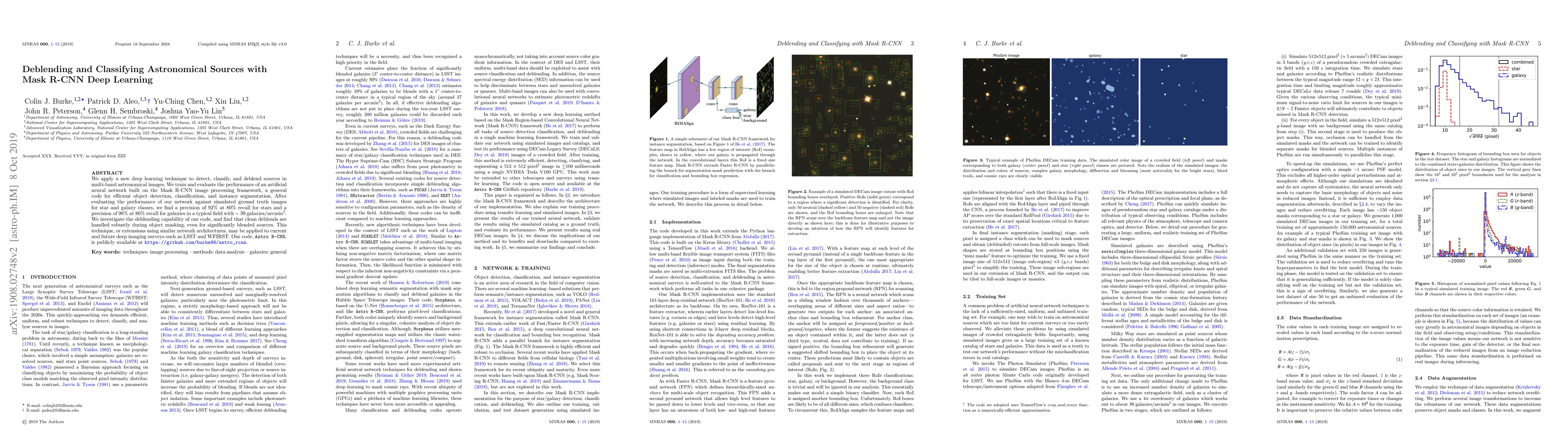 This paper introduces a deep learning method using Mask R-CNN to detect, classify, and deblend astronomical sources in multi-band images, achieving 92% precision at 80% recall for stars and 98% for galaxies. The technique robustly handles blended sources and is applicable to upcoming surveys like LSST and WFIRST.