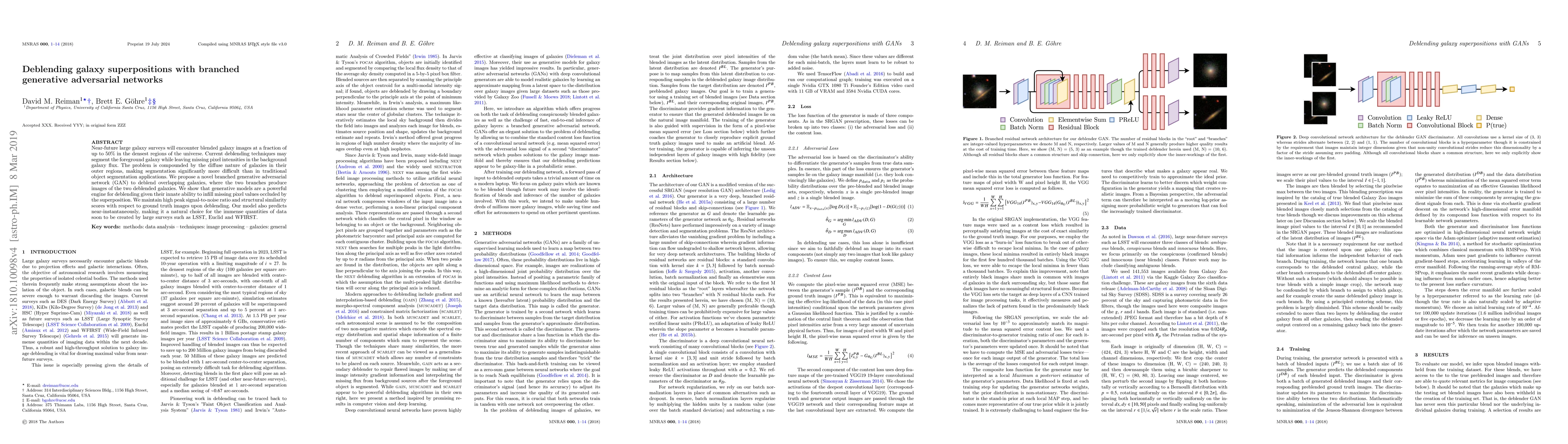 This paper proposes a novel branched generative adversarial network (GAN) to deblend overlapping galaxies in upcoming large galaxy surveys, demonstrating its ability to accurately reconstruct individual galaxies and maintain high image quality. The model's efficiency and accuracy make it suitable for processing the vast amounts of data from future surveys like LSST, Euclid, and WFIRST.