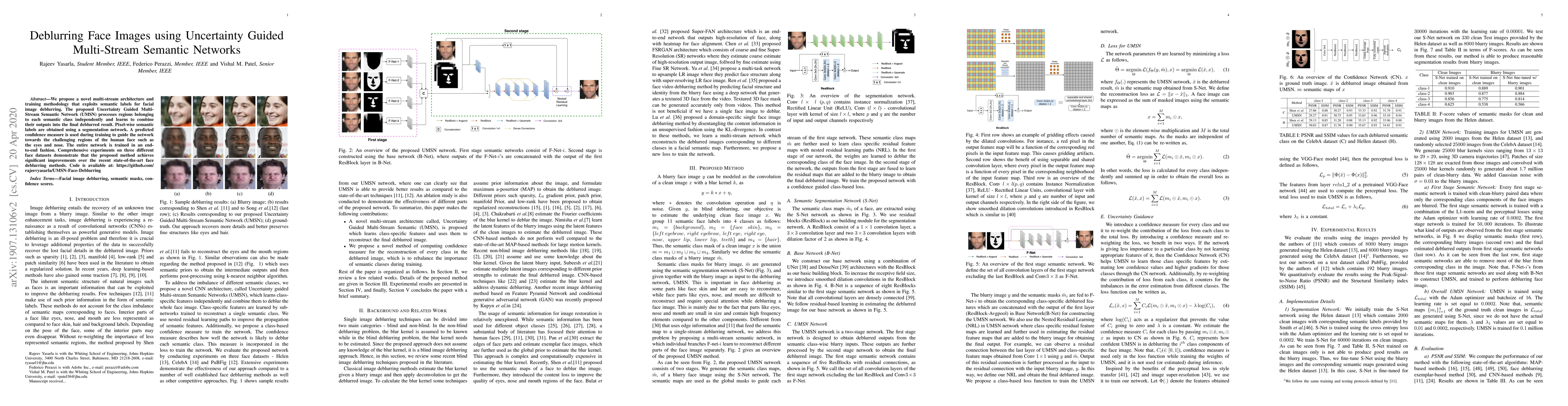 This paper proposes a novel multi-stream semantic network called UMSN for deblurring face images, leveraging semantic labels to process facial regions independently and combine their outputs for a final deblurred result. The method uses a confidence measure to focus on challenging facial areas, achieving significant improvements over recent state-of-the-art methods.