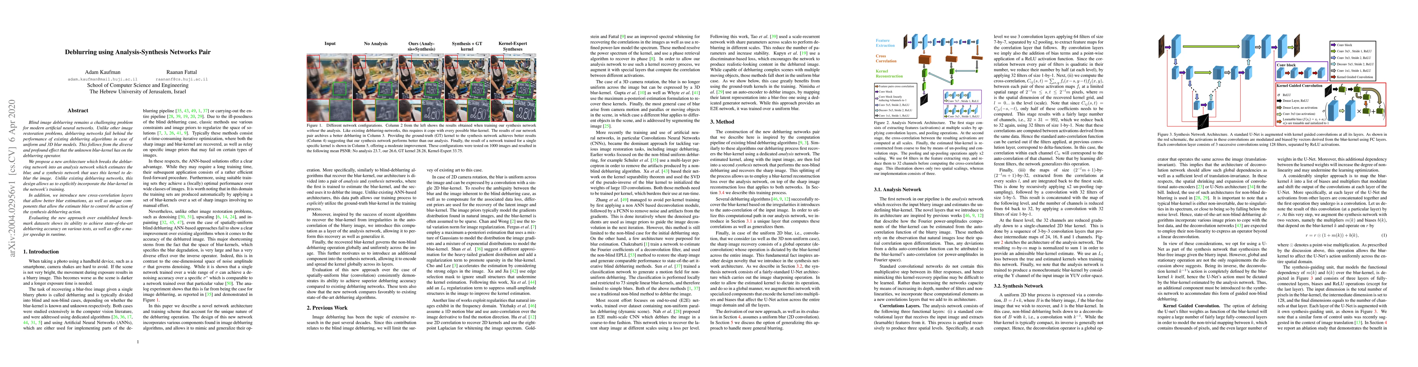 Blind image deblurring remains a challenging problem for modern artificial neural networks. Unlike other image restoration problems, deblurring networks fail behind the performance of existing deblurring algorithms in case of uniform and 3D blur models. This follows from the diverse and profound effect that the unknown blur-kernel has on the deblurring operator. We propose a new architecture which breaks the deblurring network into an analysis network which estimates the blur, and a synthesis network that uses this kernel to deblur the image. Unlike existing deblurring networks, this design allows us to explicitly incorporate the blur-kernel in the network's training. In addition, we introduce new cross-correlation layers that allow better blur estimations, as well as unique components that allow the estimate blur to control the action of the synthesis deblurring action. Evaluating the new approach over established benchmark datasets shows its ability to achieve state-of-the-art deblurring accuracy on various tests, as well as offer a major speedup in runtime.