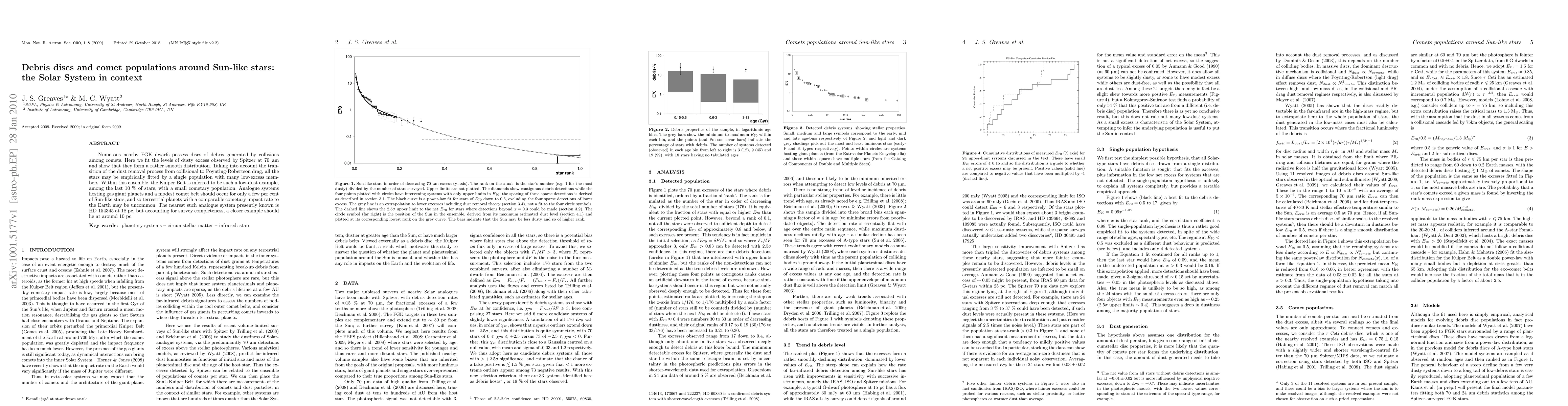 Numerous nearby FGK dwarfs possess discs of debris generated by collisions among comets. Here we fit the levels of dusty excess observed by Spitzer at 70$\umu$m and show that they form a rather smooth distribution. Taking into account the transition of the dust removal process from collisional to Poynting-Robertson drag, all the stars may be empirically fitted by a single population with many low-excess members. Within this ensemble, the Kuiper Belt is inferred to be such a low-dust example, among the last 10% of stars, with a small cometary population. Analogue systems hosting gas giant planets and a modest comet belt should occur for only a few per cent of Sun-like stars, and so terrestrial planets with a comparable cometary impact rate to the Earth may be uncommon. The nearest such analogue system presently known is HD154345 at 18pc, but accounting for survey completeness, a closer example should lie at around 10pc.