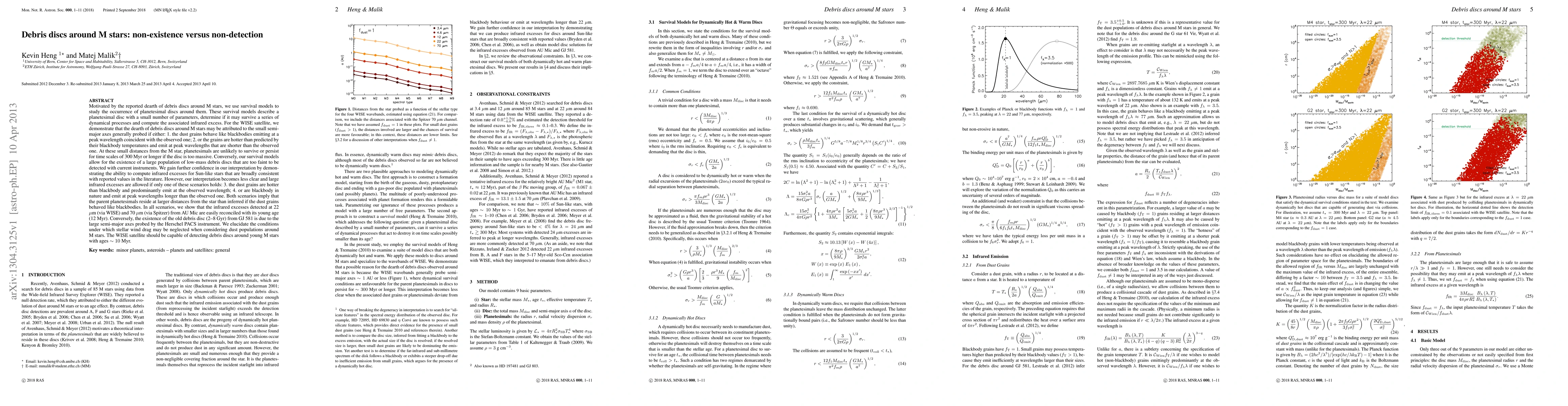 Motivated by the reported dearth of debris discs around M stars, we use survival models to study the occurrence of planetesimal discs around them. These survival models describe a planetesimal disc with a small number of parameters, determine if it may survive a series of dynamical processes and compute the associated infrared excess. For the WISE satellite, we demonstrate that the dearth of debris discs around M stars may be attributed to the small semi-major axes generally probed if either: 1. the dust grains behave like blackbodies emitting at a peak wavelength coincident with the observed one; 2. or the grains are hotter than predicted by their blackbody temperatures and emit at peak wavelengths that are shorter than the observed one. At these small distances from the M star, planetesimals are unlikely to survive or persist for time scales of 300 Myr or longer if the disc is too massive. Conversely, our survival models allow for the existence of a large population of low-mass debris discs that are too faint to be detected with current instruments. However, our interpretation becomes less clear and large infrared excesses are allowed if only one of these scenarios holds: 3. the dust grains are hotter than blackbody and predominantly emit at the observed wavelength; 4. or are blackbody in nature and emit at peak wavelengths longer than the observed one. Both scenarios imply that the parent planetesimals reside at larger distances from the star than inferred if the dust grains behaved like blackbodies. In all scenarios, we show that the infrared excesses detected at 22 and 70 microns from AU Mic are easily reconciled with its young age. We elucidate the conditions under which stellar wind drag may be neglected when considering dust populations around M stars. The WISE satellite should be capable of detecting debris discs around young M stars with ages on the order of 10 Myr.