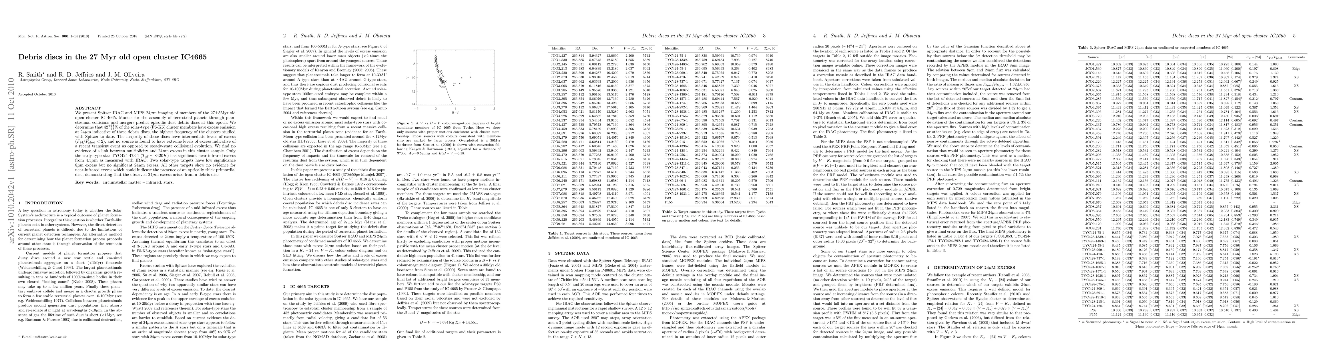 A study of the 27 Myr old open cluster IC4665 found that 42% of solar-type stars have debris discs, with most having intermediate levels of excess emission, indicating steady-state collisional evolution rather than recent transient events.