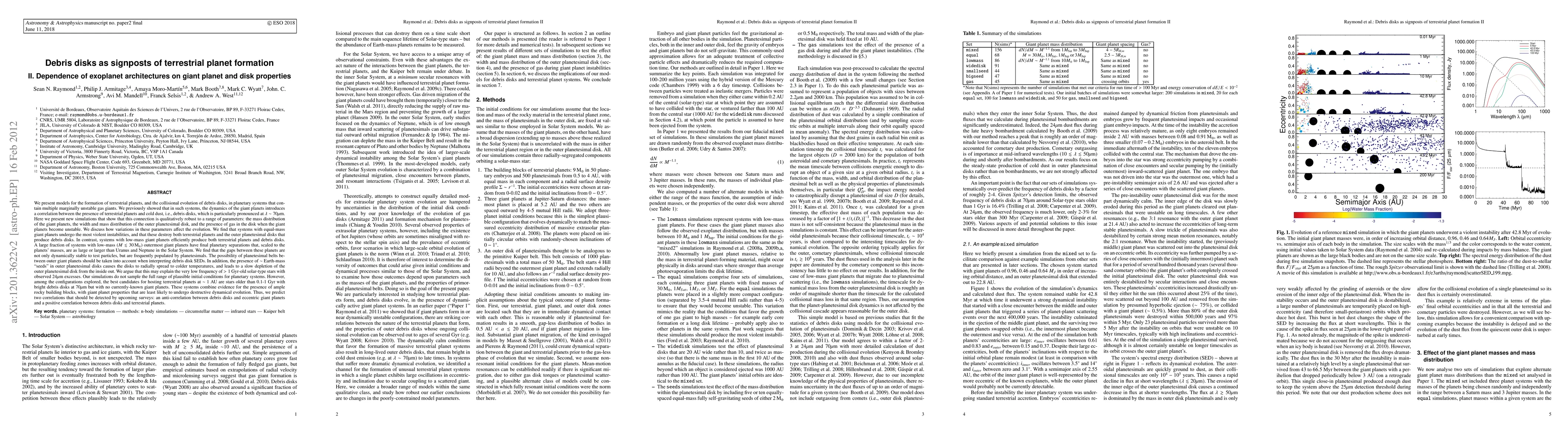 We present models for the formation of terrestrial planets, and the collisional evolution of debris disks, in planetary systems that contain multiple unstable gas giants. We previously showed that the dynamics of the giant planets introduces a correlation between the presence of terrestrial planets and debris disks. Here we present new simulations that show that this connection is qualitatively robust to changes in: the mass distribution of the giant planets, the width and mass distribution of the outer planetesimal disk, and the presence of gas in the disk. We discuss how variations in these parameters affect the evolution. Systems with equal-mass giant planets undergo the most violent instabilities, and these destroy both terrestrial planets and the outer planetesimal disks that produce debris disks. In contrast, systems with low-mass giant planets efficiently produce both terrestrial planets and debris disks. A large fraction of systems with low-mass outermost giant planets have stable gaps between these planets that are frequently populated by planetesimals. Planetesimal belts between outer giant planets may affect debris disk SEDs. If Earth-mass seeds are present in outer planetesimal disks, the disks radially spread to colder temperatures. We argue that this may explain the very low frequency of > 1 Gyr-old solar-type stars with observed 24 micron excesses. Among the (limited) set of configurations explored, the best candidates for hosting terrestrial planets at ~1 AU are stars older than 0.1-1 Gyr with bright debris disks at 70 micron but with no currently-known giant planets. These systems combine evidence for rocky building blocks, with giant planet properties least likely to undergo destructive dynamical evolution. We predict an anti-correlation between debris disks and eccentric giant planets, and a positive correlation between debris disks and terrestrial planets.