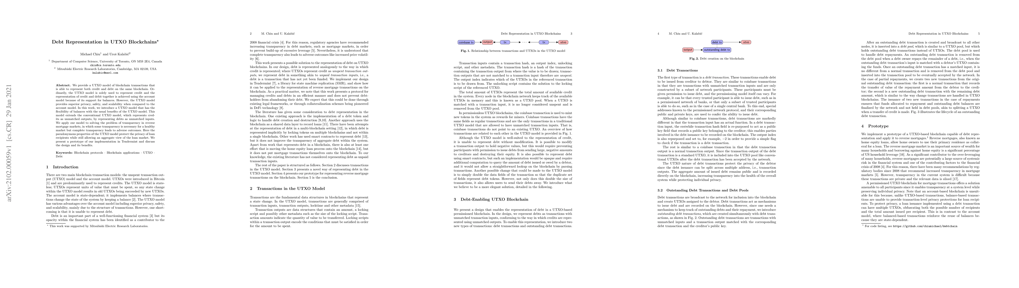We provide a UTXO model of blockchain transactions that is able to represent both credit and debt on the same blockchain. Ordinarily, the UTXO model is solely used to represent credit and the representation of credit and debit together is achieved using the account model because of its support for balances. However, the UTXO model provides superior privacy, safety, and scalability when compared to the account model. In this work, we introduce a UTXO model that has the flexibility of balances with the usual benefits of the UTXO model. This model extends the conventional UTXO model, which represents credits as unmatched outputs, by representing debts as unmatched inputs. We apply our model to solving the problem of transparency in reverse mortgage markets, in which some transparency is necessary for a healthy market but complete transparency leads to adverse outcomes. Here the pseudonymous properties of the UTXO model protect the privacy of loan recipients while still allowing an aggregate view of the loan market. We present a prototype of our implementation in Tendermint and discuss the design and its benefits.