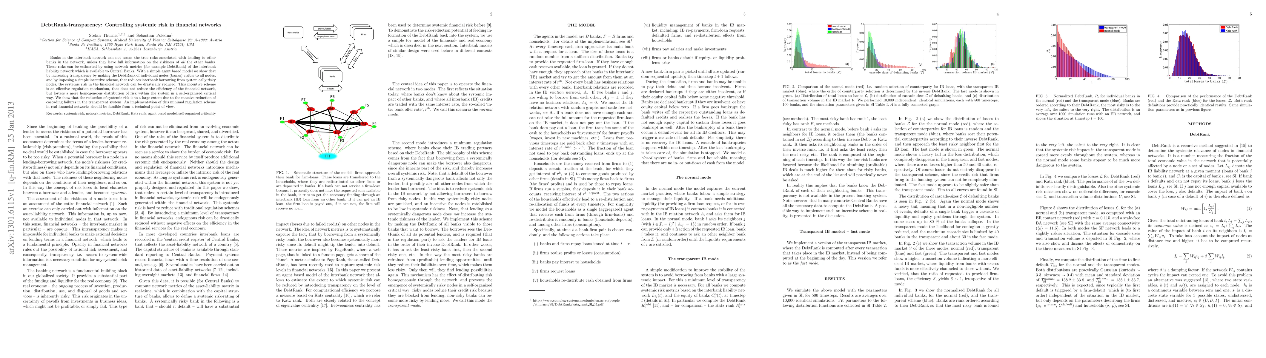 This paper proposes a method to control systemic risk in financial networks by increasing transparency through the DebtRank metric, showing that making individual bank risks visible and imposing a simple incentive scheme reduces interbank borrowing from risky nodes, thereby significantly lowering systemic risk without compromising network efficiency. The regulation fosters a more balanced risk distribution and minimizes cascading failures.