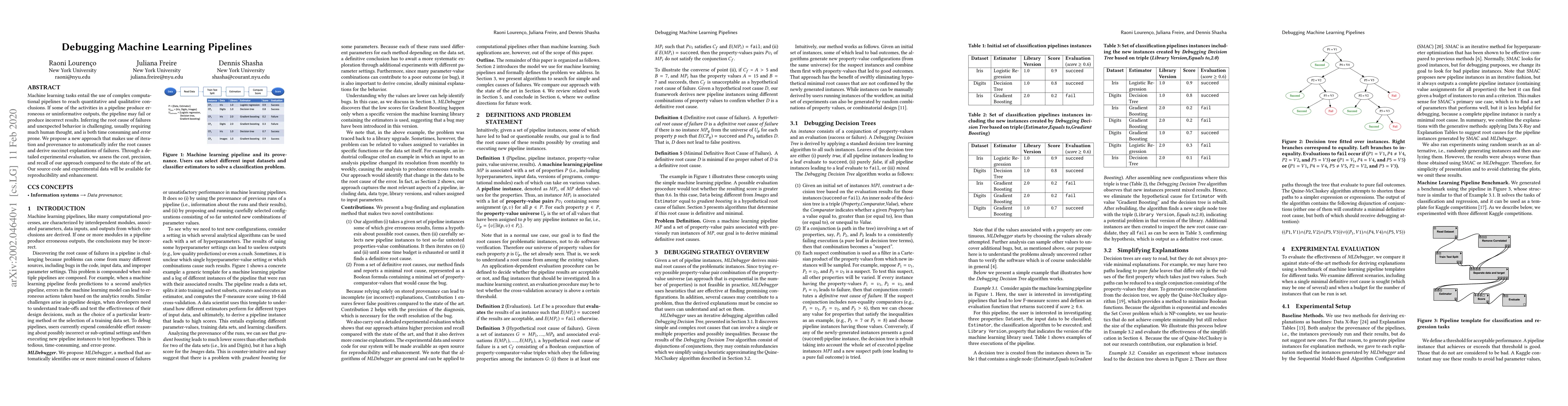 This paper proposes a novel method for automatically inferring root causes of failures in machine learning pipelines using iteration and provenance. The approach aims to provide succinct explanations and is evaluated for cost, precision, and recall against existing techniques.