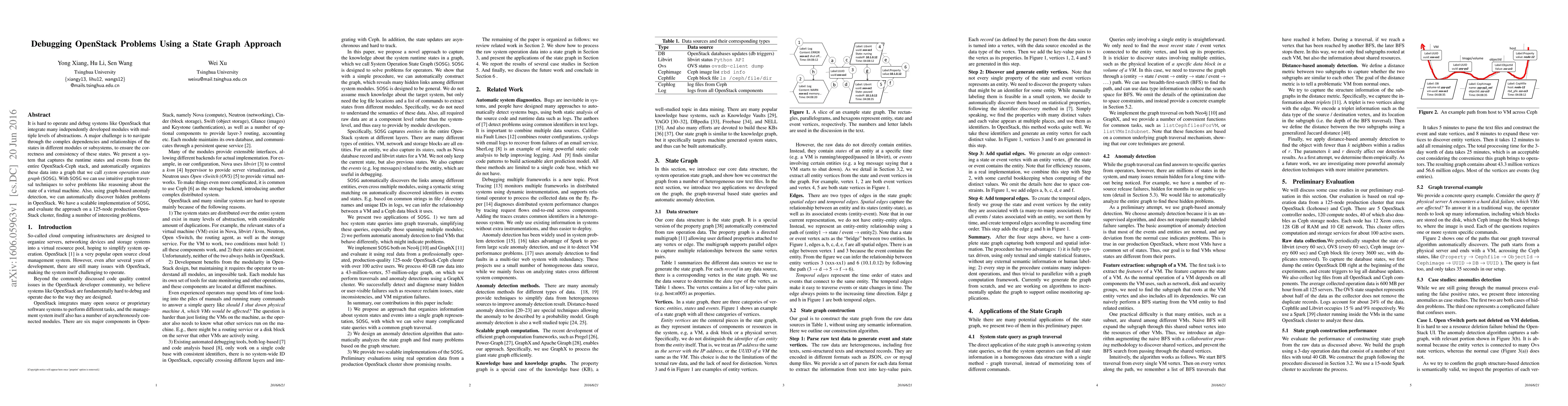 This paper introduces a system that constructs a state graph from the runtime states and events of an OpenStack-Ceph stack, enabling intuitive problem debugging and anomaly detection. The system's scalable implementation was evaluated on a 125-node production cluster, revealing several hidden issues.