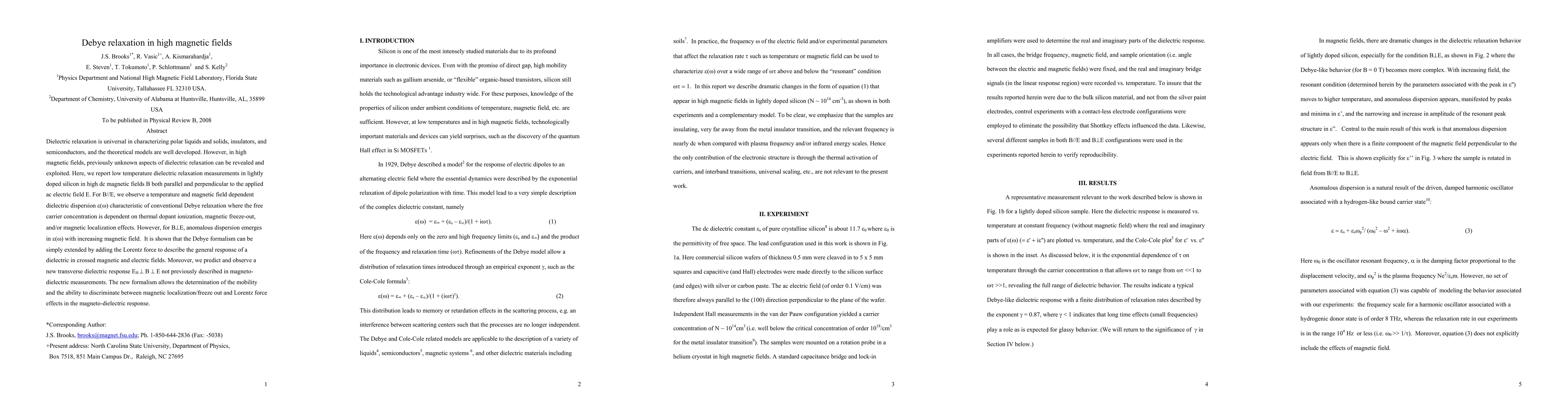 This research reports on dielectric relaxation measurements in silicon under high magnetic fields, revealing new aspects of Debye relaxation. For magnetic fields parallel to the electric field, conventional Debye behavior is observed. Perpendicular fields introduce anomalous dispersion and a novel transverse dielectric response, explained by extending Debye formalism with Lorentz force, enabling mobility determination and discrimination of magnetic effects.