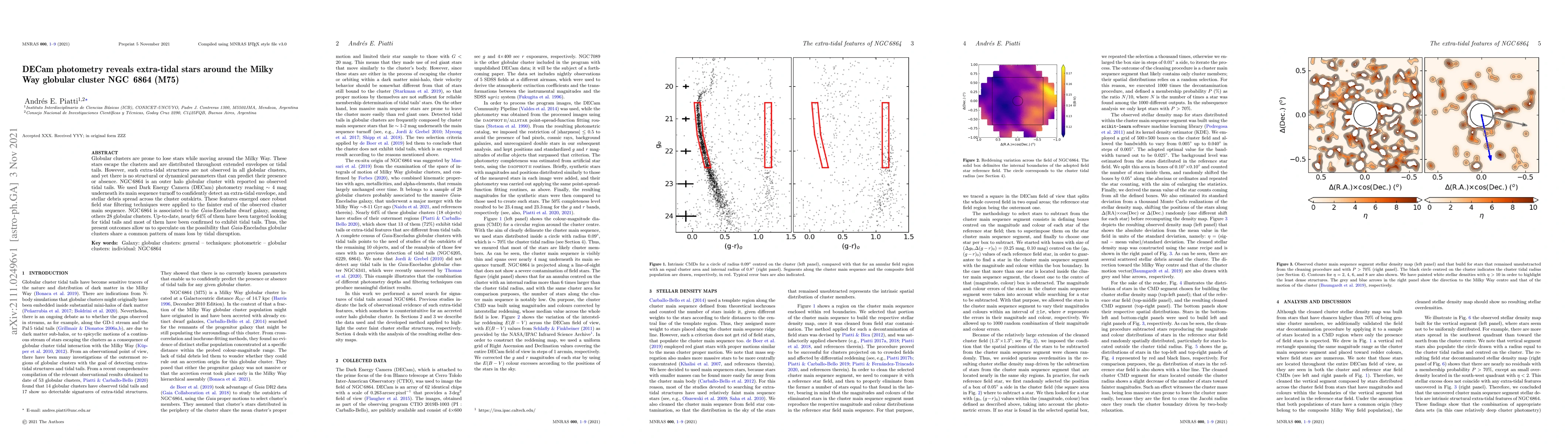 The study reveals extra-tidal stars and an extended envelope around the Milky Way globular cluster NGC 6864 using DECam photometry, challenging the notion that it lacks tidal tails. This discovery suggests that clusters associated with the Gaia-Enceladus dwarf galaxy may commonly experience tidal disruption.