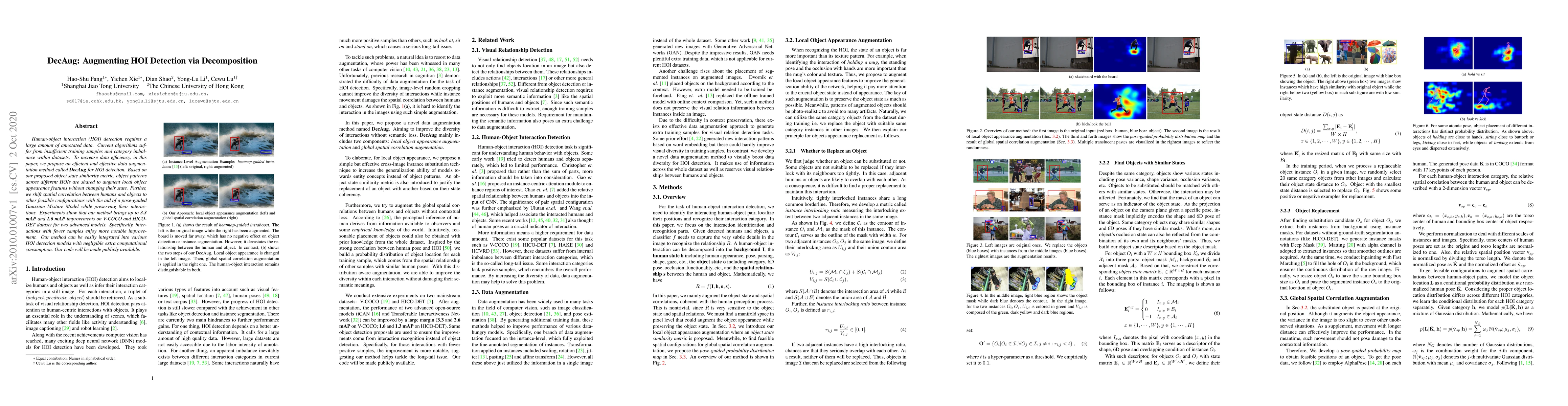 Researchers propose DecAug, an efficient data augmentation method for HOI detection, achieving up to 3.3 mAP improvements on V-COCO and HICODET datasets with minimal computational consumption.