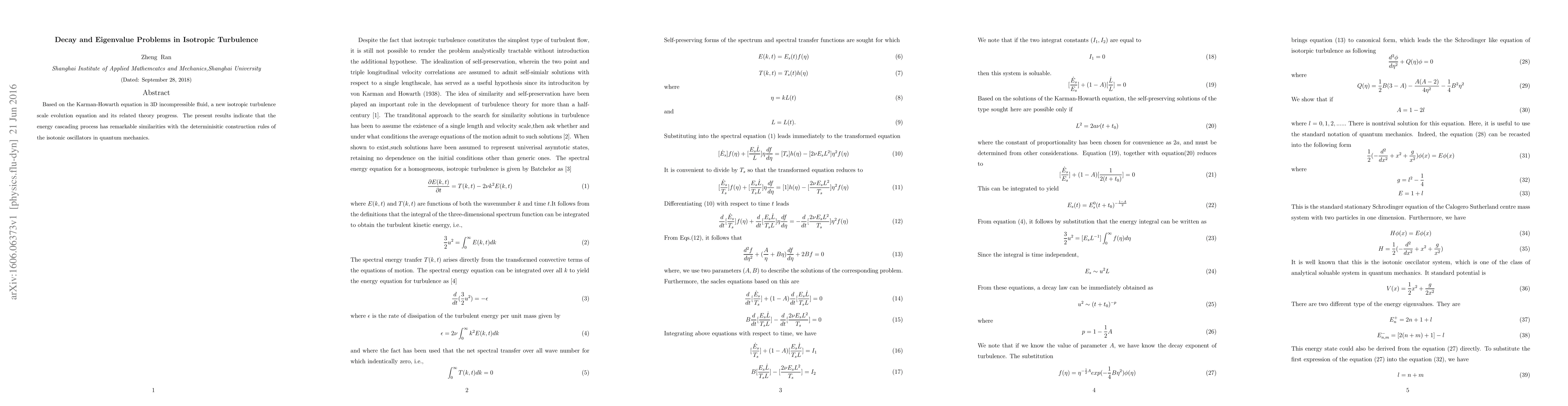 Based on the Karman-Howarth equation in 3D incompressible fluid, a new isotropic turbulence scale evolution equation and its related theory progress. The present results indicate that the energy cascading process has remarkable similarities with the determinisitic construction rules of the isotonic oscillators in quantum mechanics.