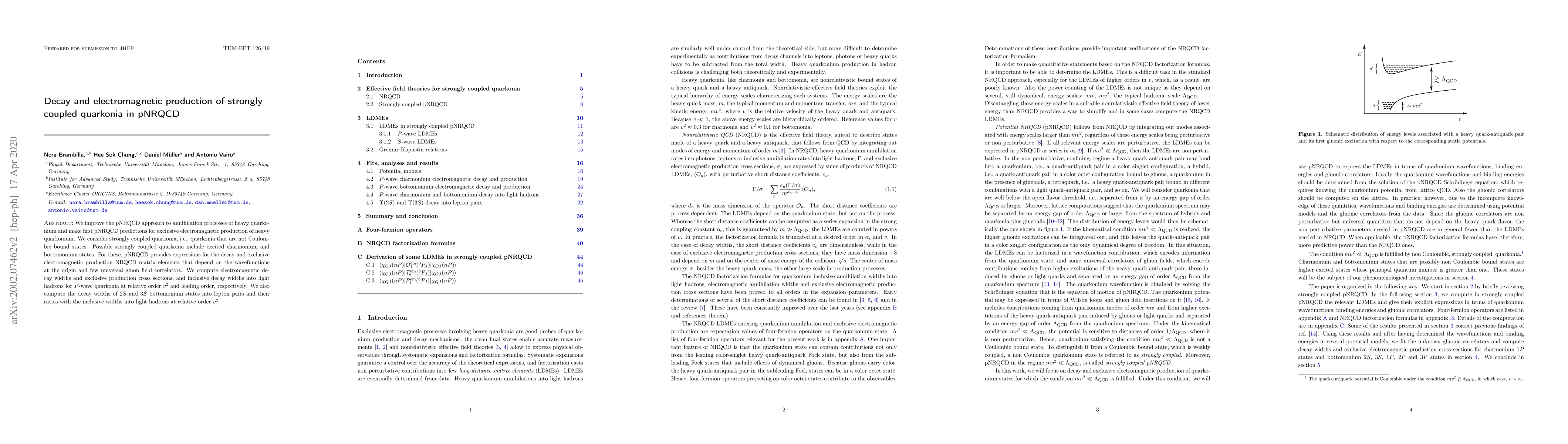 This paper refines the potential non-relativistic QCD (pNRQCD) framework to analyze annihilation processes in strongly coupled quarkonia, providing predictions for their electromagnetic production. It computes decay widths and production cross sections for excited charmonium and bottomonium states, including ratios of decay widths to lepton pairs and inclusive widths into light hadrons.