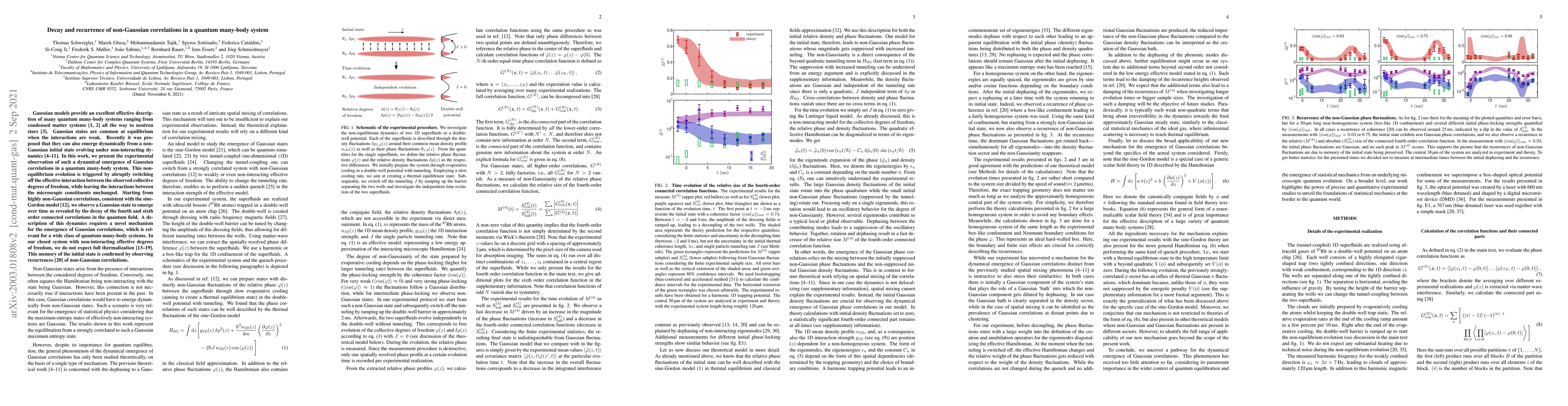 This paper reports experimental observation of the emergence of Gaussian correlations in a quantum many-body system from a non-Gaussian initial state, triggered by switching off effective interactions. The study reveals recurrences of non-Gaussian correlations, indicating memory of the initial state, and proposes a novel mechanism for this dynamic process.