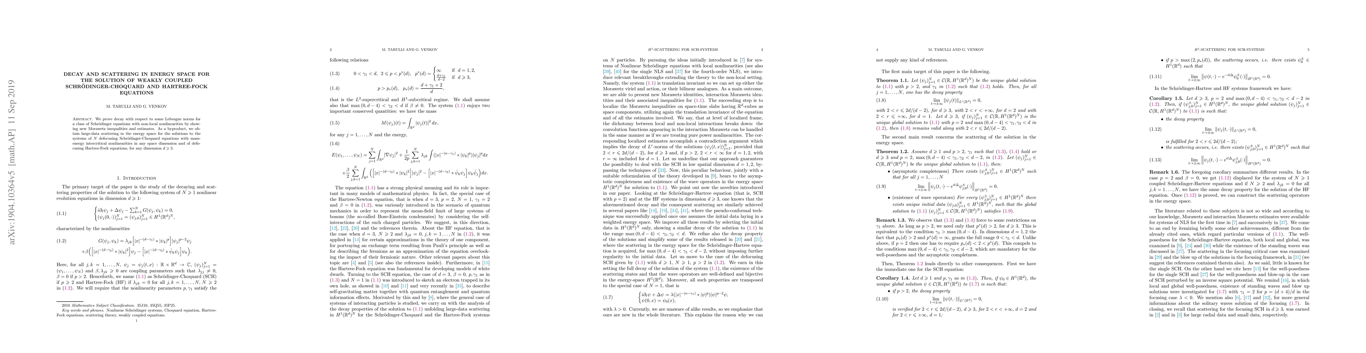 This paper proves decay estimates for solutions to weakly coupled Schrödinger-Choquard and Hartree-Fock equations with non-local nonlinearities, establishing new Morawetz inequalities. It also demonstrates large-data scattering in energy space for these systems across any dimension.