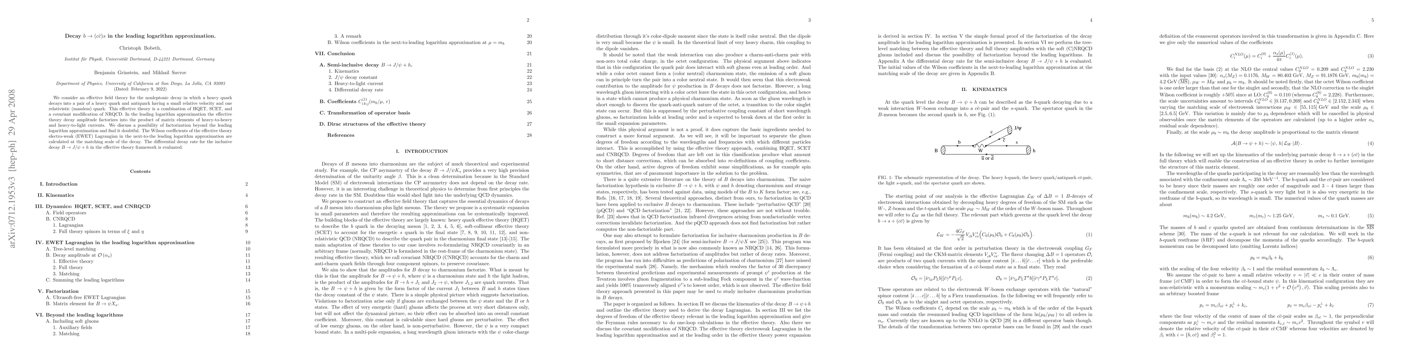 This paper explores an effective field theory for the decay b -> (c\bar{c}) s, combining HQET, SCET, and NRQCD. It finds the decay amplitude factorizes in the leading logarithm approximation, while doubts remain about factorization beyond this level. The study evaluates the differential decay rate for B -> J/\psi+h within this framework.