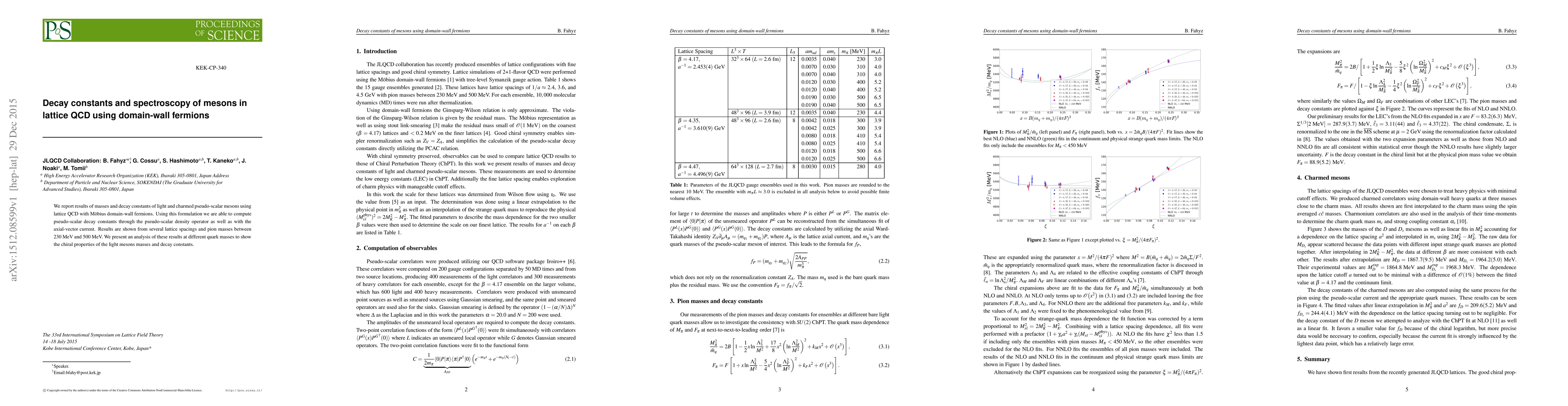 We report results of masses and decay constants of light and charmed pseudo-scalar mesons using lattice QCD with M\"obius domain-wall fermions. Using this formulation we are able to compute pseudo-scalar decay constants through the pseudo-scalar density operator as well as with the axial-vector current. Results are shown from several lattice spacings and pion masses between 230 MeV and 500 MeV. We present an analysis of these results at different quark masses to show the chiral properties of the light mesons masses and decay constants.