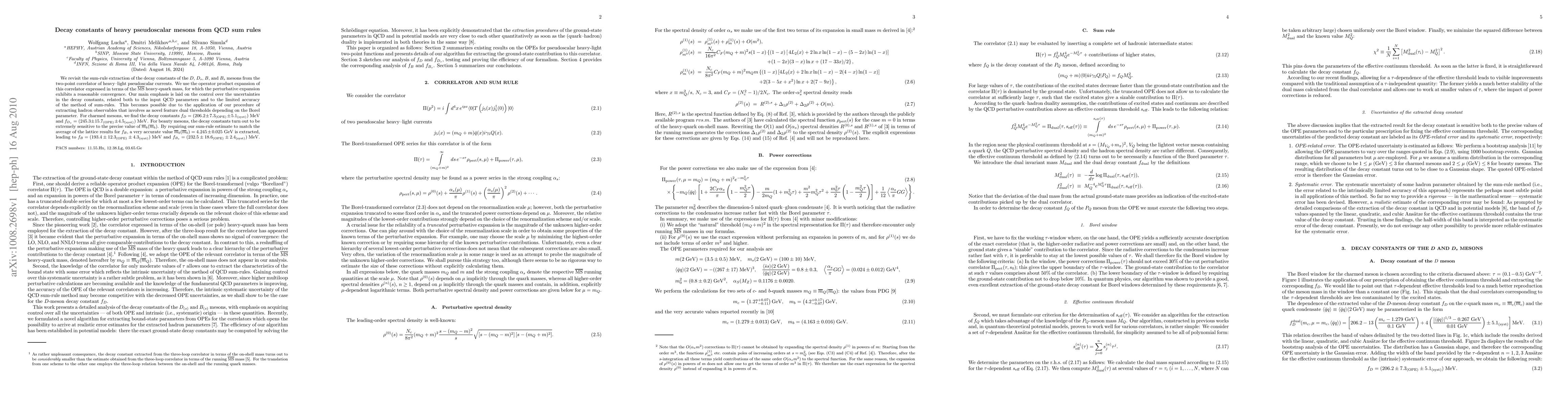 This paper revisits the extraction of decay constants for D, Ds, B, and Bs mesons using QCD sum rules, focusing on controlling uncertainties. The study finds f_D=206.2±7.3(OPE)±5.1(syst) MeV, f_Ds=245.3±15.7(OPE)±4.5(syst) MeV, f_B=193.4±12.3(OPE)±4.3(syst) MeV, and f_Bs=232.5±18.6(OPE)±2.4(syst) MeV, with significant sensitivity of beauty mesons to mb(mb).