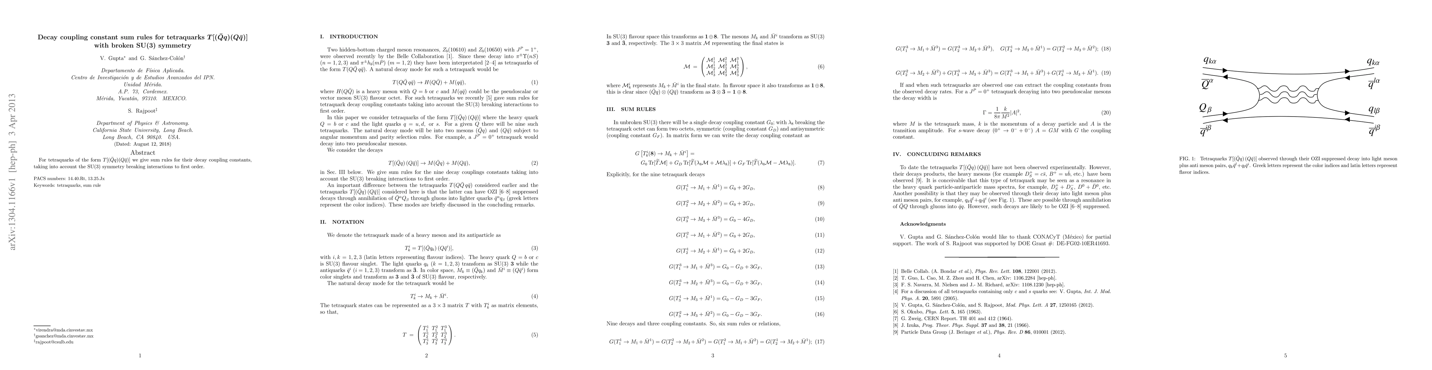 For tetraquarks of the form $T[(\bar{Q}q)(Q\bar{q})]$ we give sum rules for their decay coupling constants, taking into account the SU(3) symmetry breaking interactions to first order.