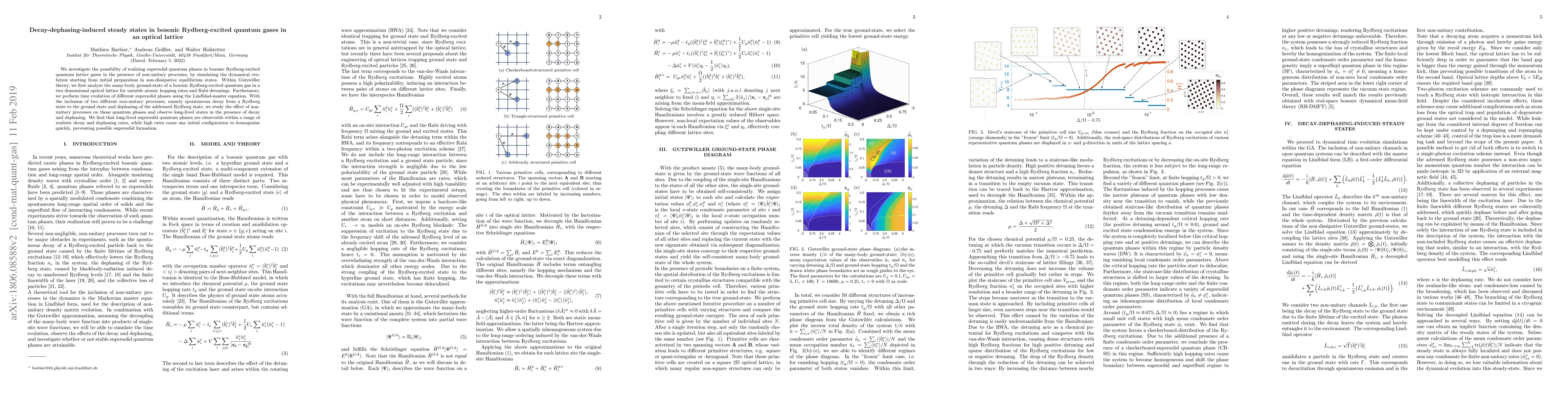 This paper explores the impact of decay and dephasing on bosonic Rydberg-excited quantum gases in optical lattices, finding that non-unitary processes can lead to stable supersolid phases within certain decay and dephasing rates, while high rates cause rapid homogenization and prevent supersolid formation.