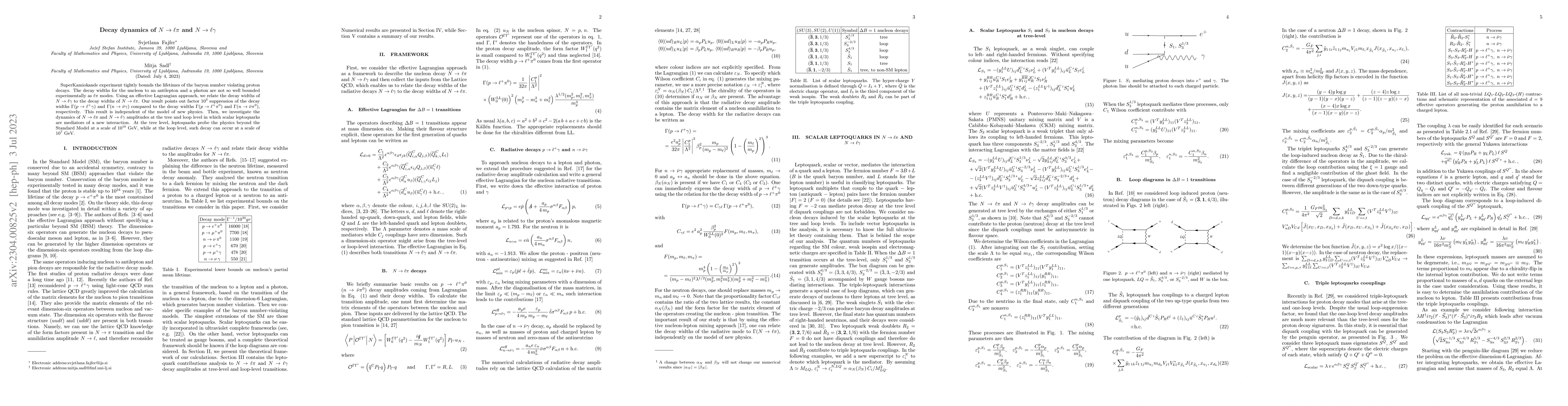 This paper uses an effective Lagrangian approach to determine the decay widths of nucleon decays into an antilepton and a photon, finding a factor of $10^{3}$ suppression compared to decays into an antilepton and a pion. It also explores the dynamics of these decays mediated by scalar leptoquarks, indicating tree-level probing of new physics at $10^{16}$ GeV and loop-level interactions at $10^{7}$ GeV.
