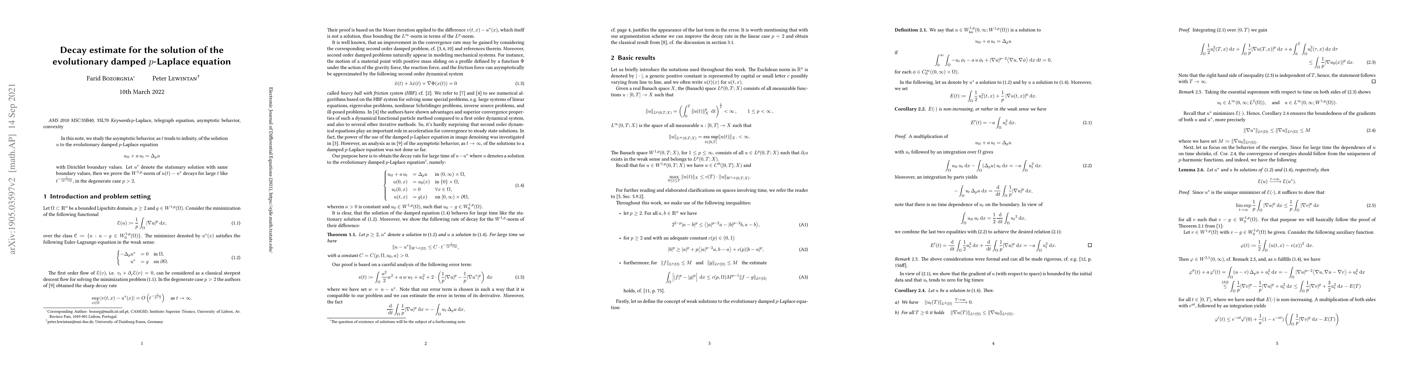 In this note, we study the asymptotic behavior, as $t$ tends to infinity, of the solution $u$ to the evolutionary damped $p$-Laplace equation \begin{equation*} u_{tt}+a\, u_t =\Delta_p u \end{equation*} with Dirichlet boundary values. Let $u^*$ denote the stationary solution with same boundary values, then the $W^{1,p}$-norm of $u(t) - u^{*}$ decays for large $t$ like $t^{-\frac{1}{(p-1)p}}$, in the degenerate case $ p > 2$.