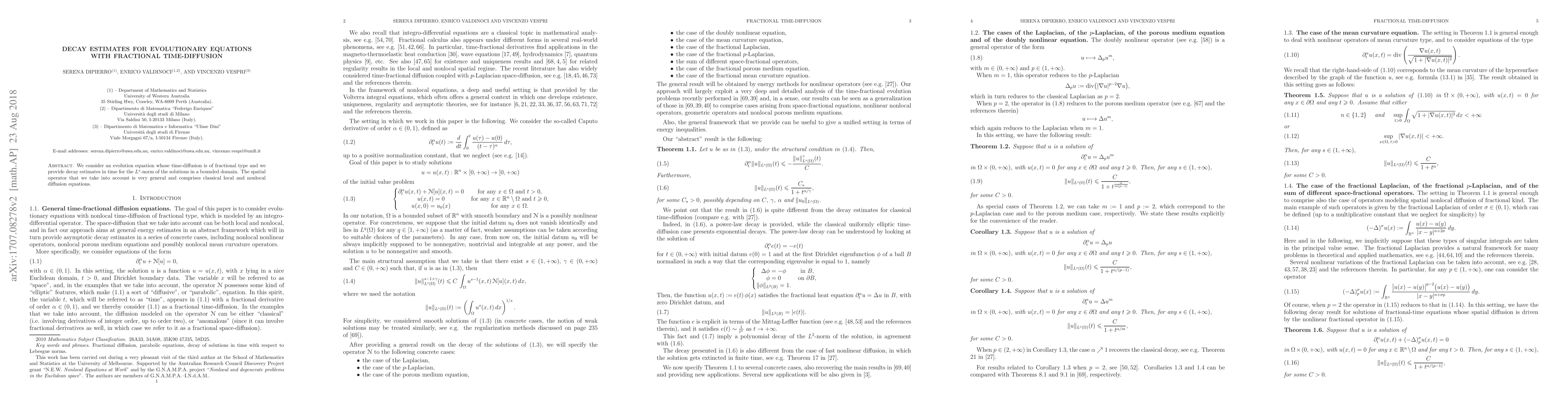 Summary: This paper investigates an evolutionary equation with fractional time-diffusion, providing decay estimates for the $L^s$-norm of solutions in a bounded domain. The study encompasses a broad range of spatial operators, including both classical and nonlocal diffusion equations.