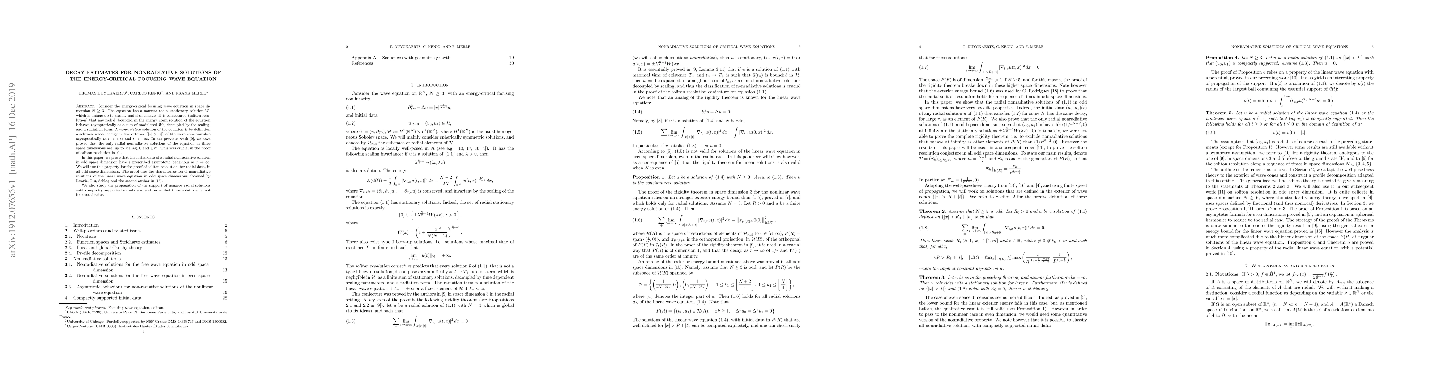 This paper investigates decay estimates for radial nonradiative solutions of the energy-critical focusing wave equation in odd space dimensions. It proves the asymptotic behavior of initial data for such solutions and demonstrates that nonzero radial solutions with compactly supported initial data cannot be nonradiative.