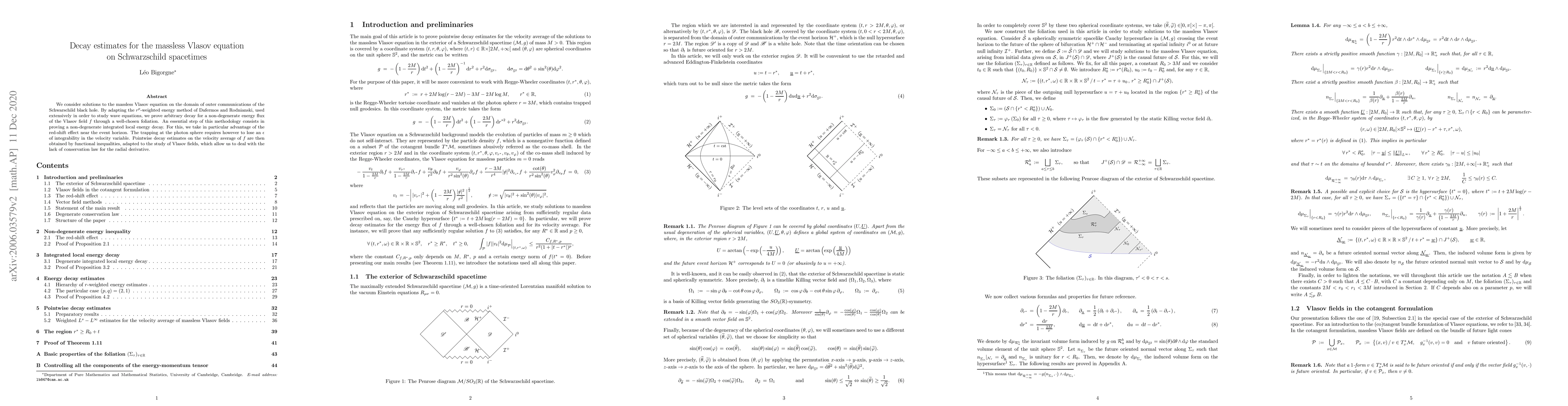 This paper proves arbitrary decay for solutions to the massless Vlasov equation on Schwarzschild spacetimes by adapting the r^p-weighted energy method. It leverages the red-shift effect near the event horizon for integrated local energy decay, while addressing the trapping at the photon sphere by losing an epsilon of integrability.
