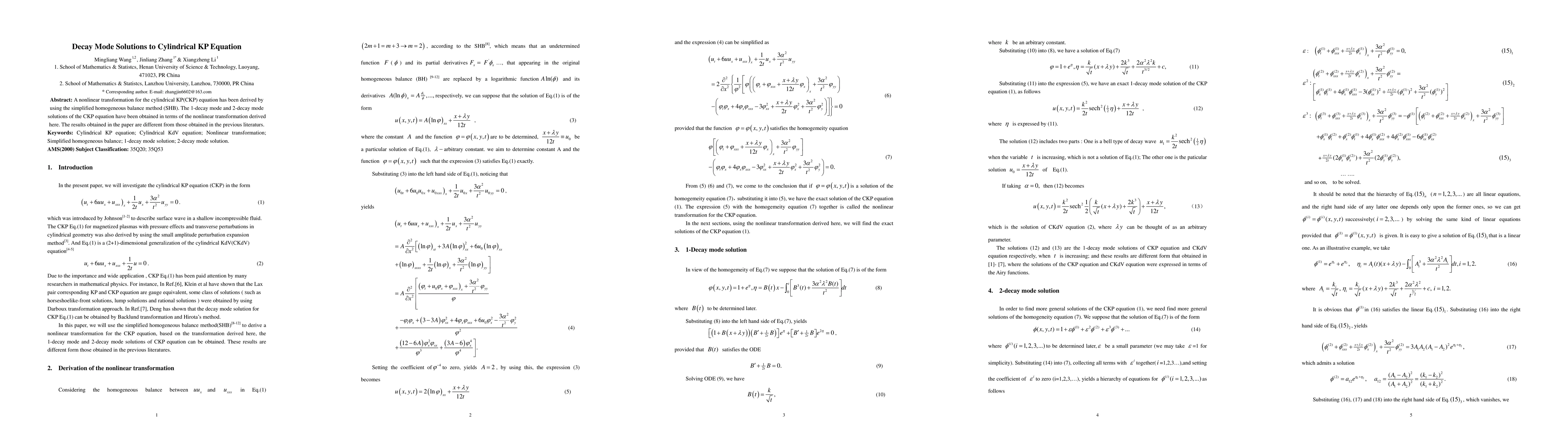 This paper derives a nonlinear transformation for the cylindrical KP equation using the simplified homogeneous balance method, and presents 1-decay and 2-decay mode solutions that differ from previous findings.