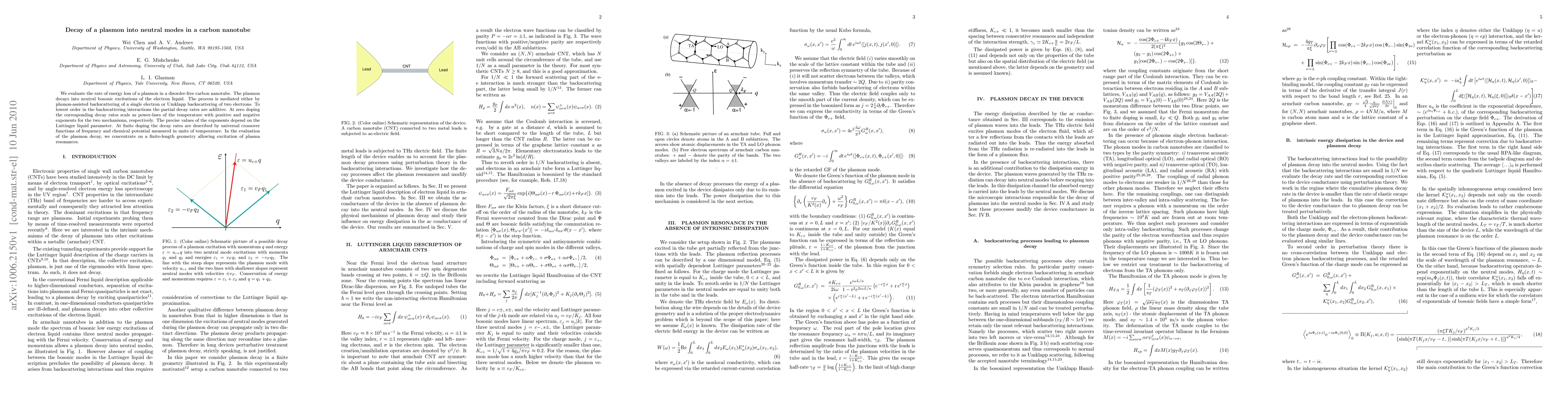 The paper presents a comprehensive analysis of plasmon decay mechanisms in carbon nanotubes, deriving decay rates for both Umklapp and phonon-assisted processes and linking them to intrinsic properties and ac conductivity of uniform carbon nanotubes.