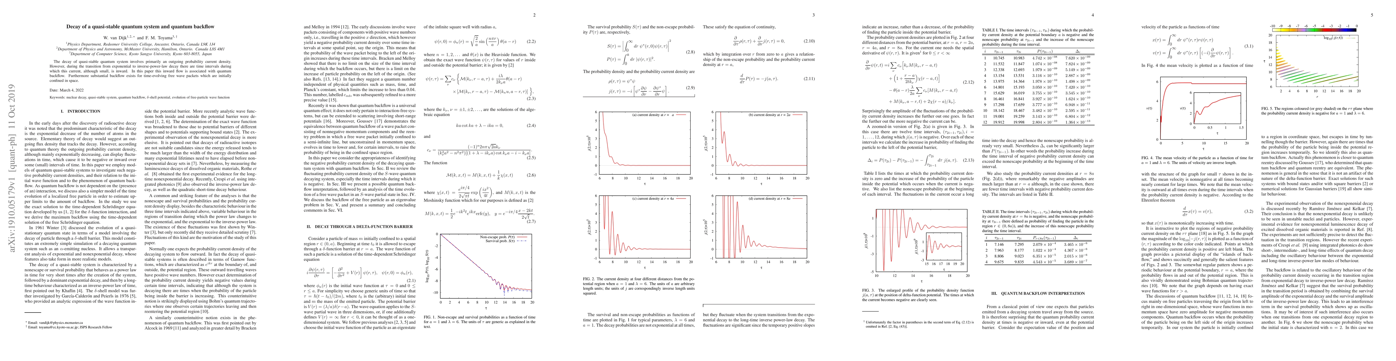 This research explores the decay of quasi-stable quantum systems, revealing that during the transition from exponential to inverse-power-law decay, there are brief periods of inward probability current, a phenomenon known as quantum backflow. The study also finds substantial backflow in initially space-confined, time-evolving free wave packets.