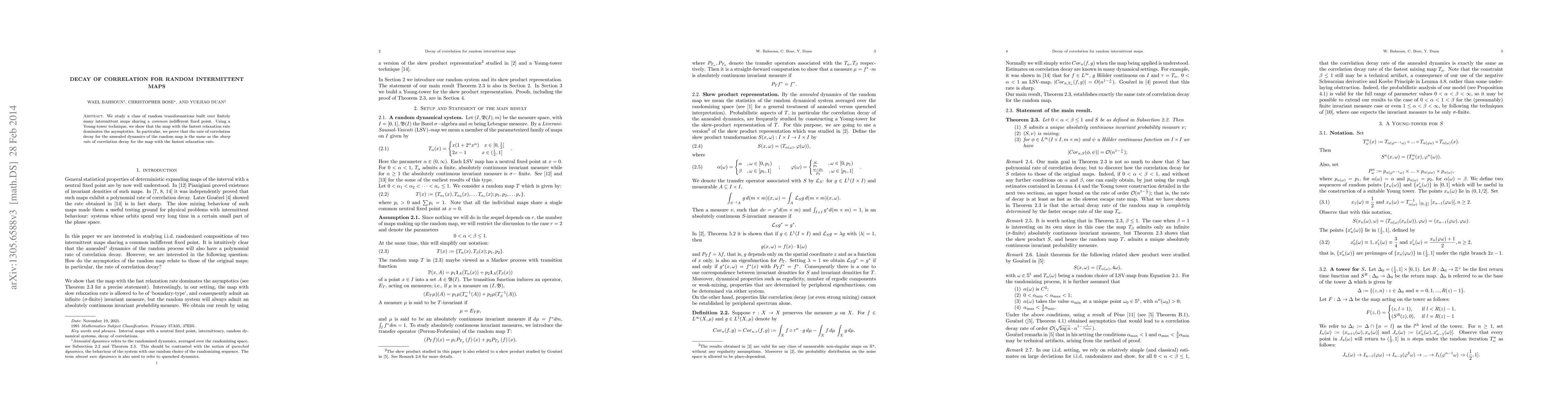 This paper investigates random transformations based on intermittent maps with a common indifferent fixed point, demonstrating that the map with the fastest relaxation rate determines the asymptotic behavior. It proves that the correlation decay rate for the annealed dynamics matches the sharp decay rate of the fastest relaxing map.