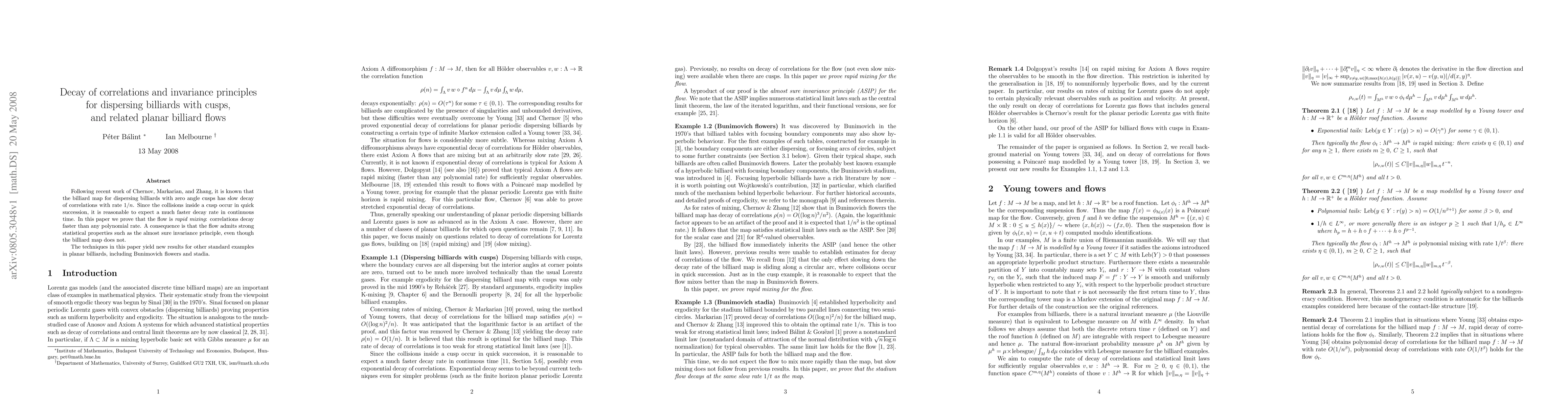 This paper proves that the flow for dispersing billiards with cusps exhibits rapid mixing, leading to faster-than-polynomial decay of correlations. It also establishes strong statistical properties like the almost sure invariance principle, despite the billiard map's non-mixing nature.