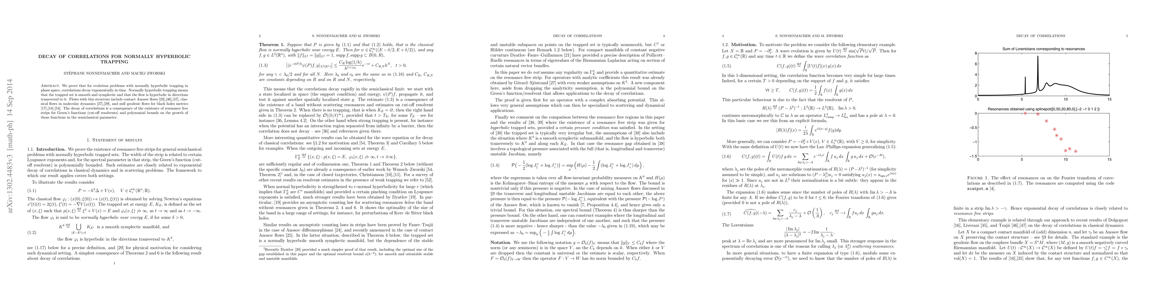This paper proves that in systems with normally hyperbolic trapping, correlations decay exponentially over time due to the presence of resonance-free strips for Green's functions and polynomial bounds on their growth in the semiclassical parameter. Such systems include contact Anosov flows, molecular dynamics, and null geodesic flows for black hole metrics.