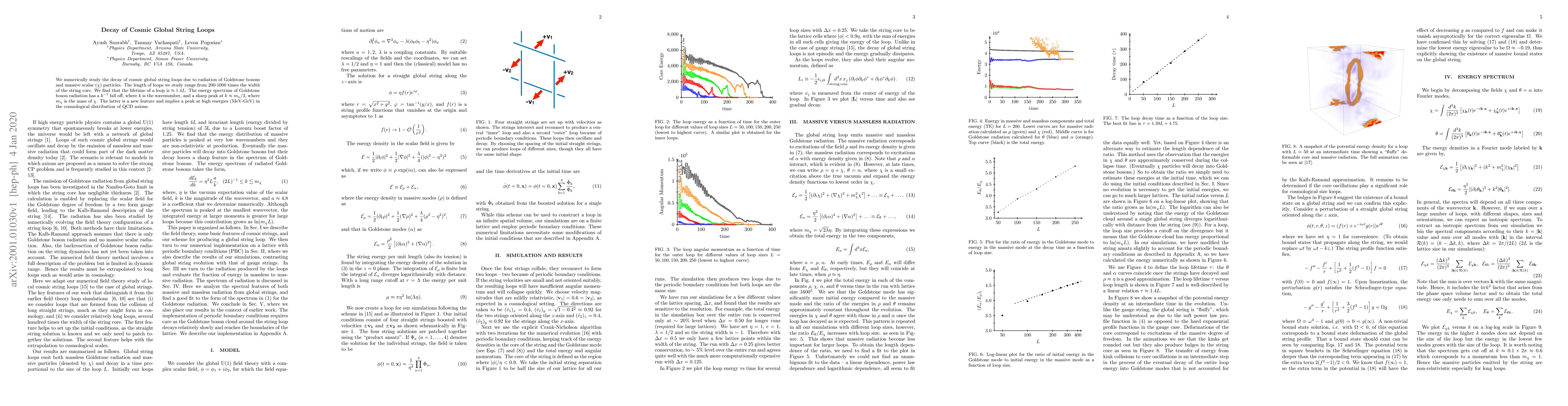 This study numerically examines the decay of cosmic global string loops via radiation of Goldstone bosons and massive scalar particles. The researchers find that loop lifetimes scale approximately as $1.4 L$, where $L$ is loop length, and reveal a new peak in the energy spectrum of QCD axions at MeV-GeV energies due to radiation of massive scalars.