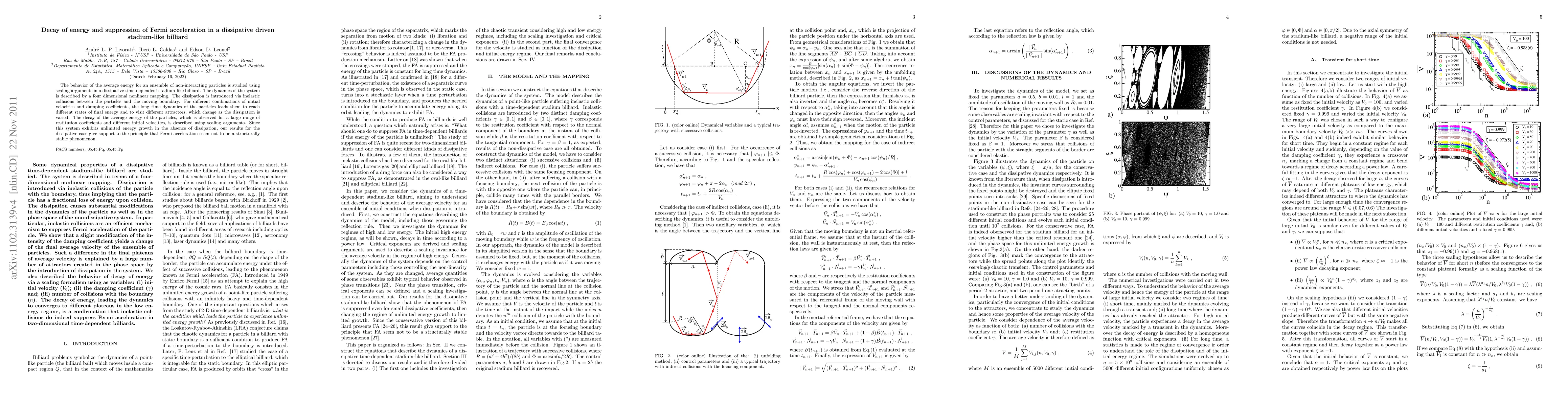 This paper investigates the average energy decay and suppression of Fermi acceleration in a dissipative, time-dependent stadium-like billiard. The study reveals that inelastic collisions and dissipation lead to varied final energy states and attractors, supporting the notion that Fermi acceleration is not structurally stable in such systems.