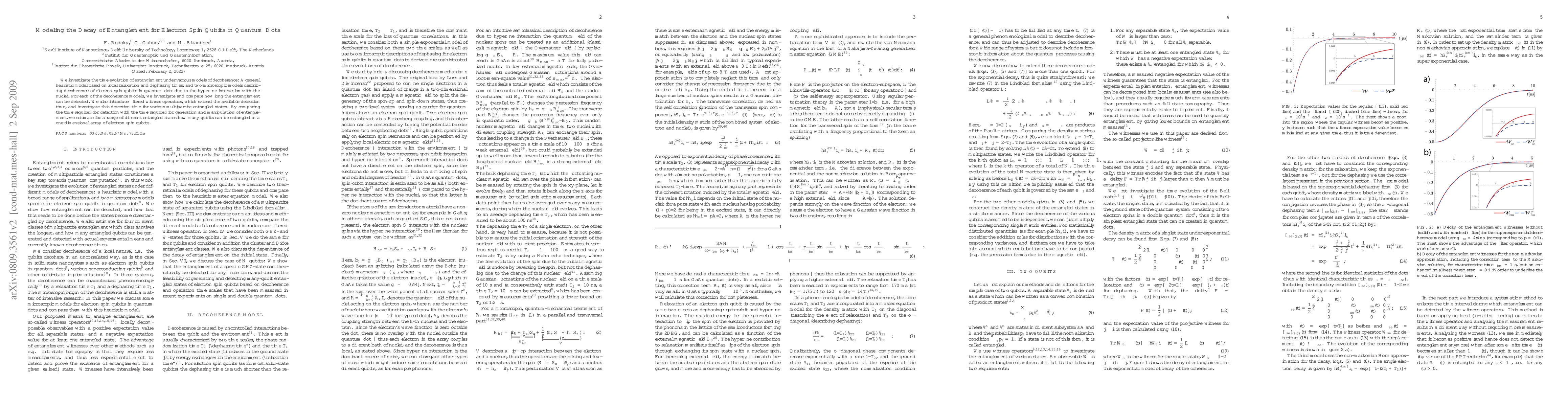 We investigate the time evolution of entanglement under various models of decoherence: A general heuristic model based on local relaxation and dephasing times, and two microscopic models describing decoherence of electron spin qubits in quantum dots due to the hyperfine interaction with the nuclei. For each of the decoherence models, we investigate and compare how long the entanglement can be detected. We also introduce filtered witness operators, which extend the available detection time, and investigate this detection time for various multipartite entangled states. By comparing the time required for detection with the time required for generation and manipulation of entanglement, we estimate for a range of different entangled states how many qubits can be entangled in a one-dimensional array of electron spin qubits.