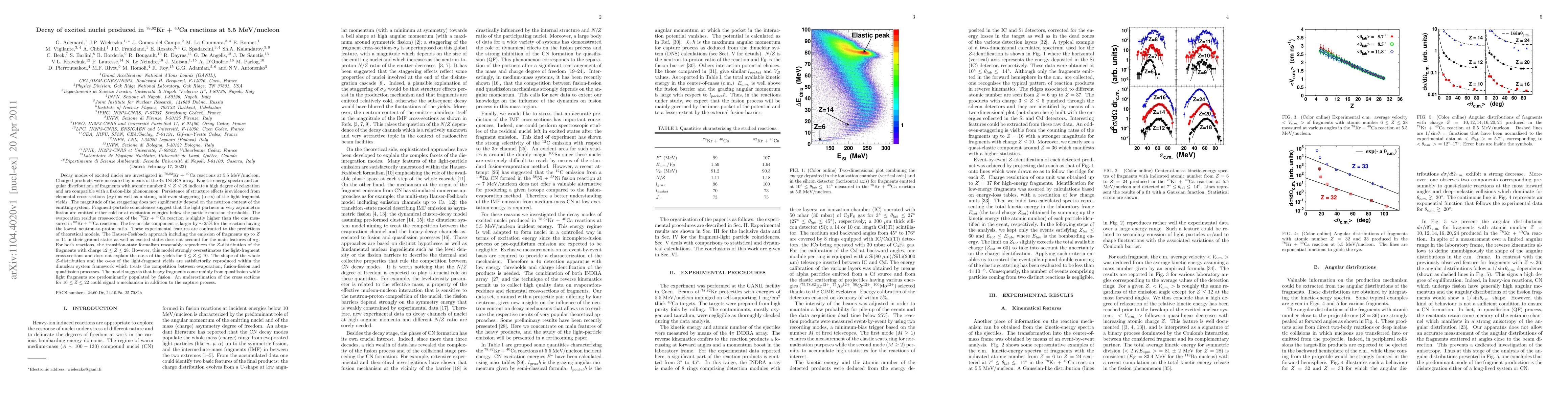 Researchers studied excited nuclei produced in reactions between Kr and Ca at 5.5 MeV/nucleon, finding evidence of fission-like phenomena and unusual staggering patterns in light-fragment yields.