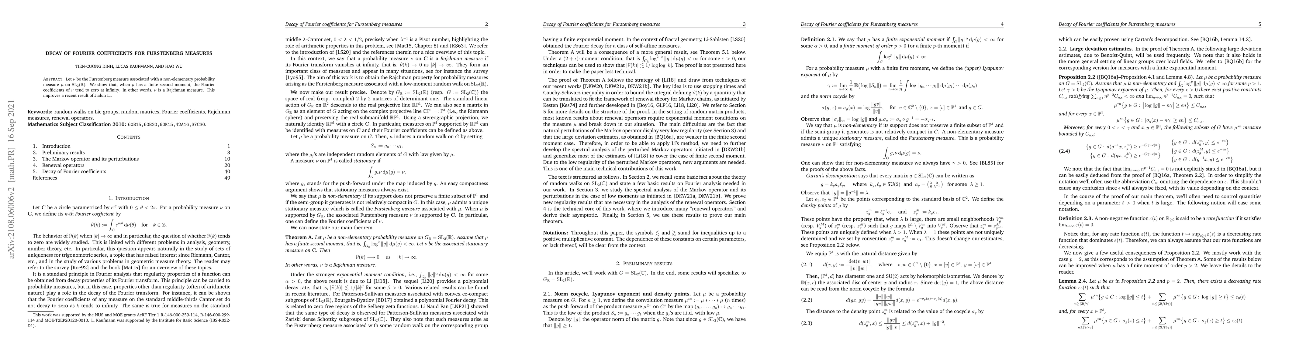 This paper demonstrates that under the condition of finite second moment, the Fourier coefficients of Furstenberg measures decay to zero, confirming these measures are Rajchman measures. This improves upon a previous result by Jialun Li.