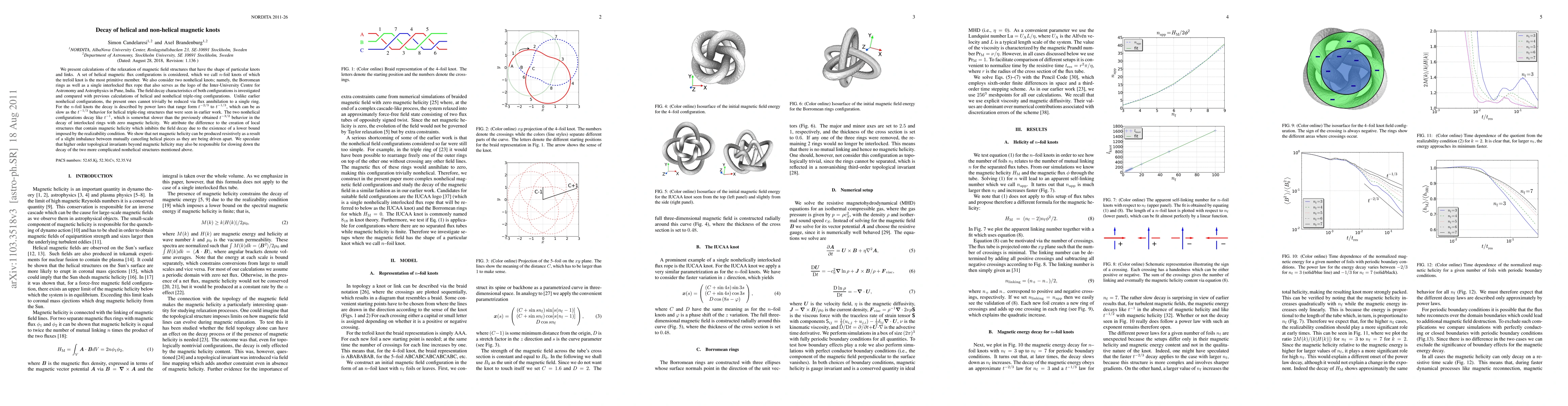 We present calculations of the relaxation of magnetic field structures that have the shape of particular knots and links. A set of helical magnetic flux configurations is considered, which we call $n$-foil knots of which the trefoil knot is the most primitive member. We also consider two nonhelical knots; namely, the Borromean rings as well as a single interlocked flux rope that also serves as the logo of the Inter-University Centre for Astronomy and Astrophysics in Pune, India. The field decay characteristics of both configurations is investigated and compared with previous calculations of helical and nonhelical triple-ring configurations. Unlike earlier nonhelical configurations, the present ones cannot trivially be reduced via flux annihilation to a single ring. For the $n$-foil knots the decay is described by power laws that range form $t^{-2/3}$ to $t^{-1/3}$, which can be as slow as the $t^{-1/3}$ behavior for helical triple-ring structures that were seen in earlier work. The two nonhelical configurations decay like $t^{-1}$, which is somewhat slower than the previously obtained $t^{-3/2}$ behavior in the decay of interlocked rings with zero magnetic helicity. We attribute the difference to the creation of local structures that contain magnetic helicity which inhibits the field decay due to the existence of a lower bound imposed by the realizability condition. We show that net magnetic helicity can be produced resistively as a result of a slight imbalance between mutually canceling helical pieces as they are being driven apart. We speculate that higher order topological invariants beyond magnetic helicity may also be responsible for slowing down the decay of the two more complicated nonhelical structures mentioned above.