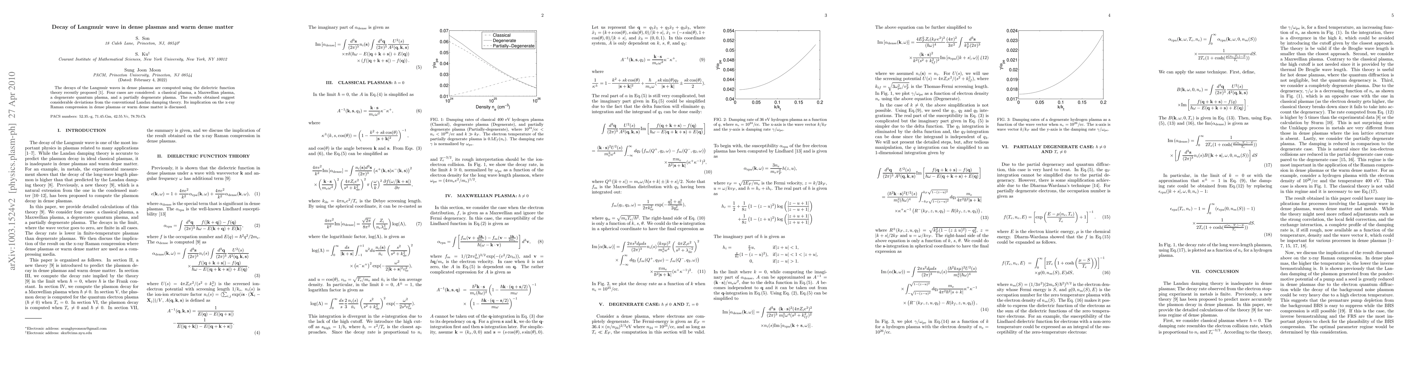 This paper investigates the decay mechanisms of Langmuir waves in dense plasmas using dielectric function theory, finding significant differences in decay behavior across classical, Maxwellian, degenerate quantum, and partially degenerate plasmas compared to conventional Landau damping.