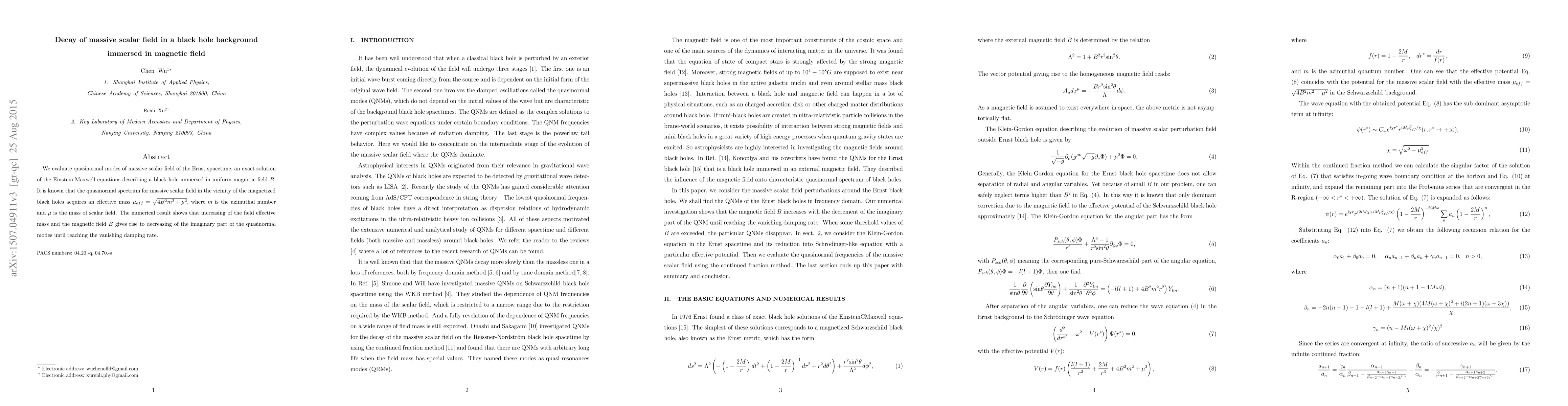 This paper evaluates the quasinormal modes of a massive scalar field around a black hole in an Ernst spacetime immersed in a magnetic field, revealing the effective mass's dependence on the magnetic field and scalar field parameters. The study finds that increasing the magnetic field reduces the damping rate of the quasinormal modes until it vanishes.