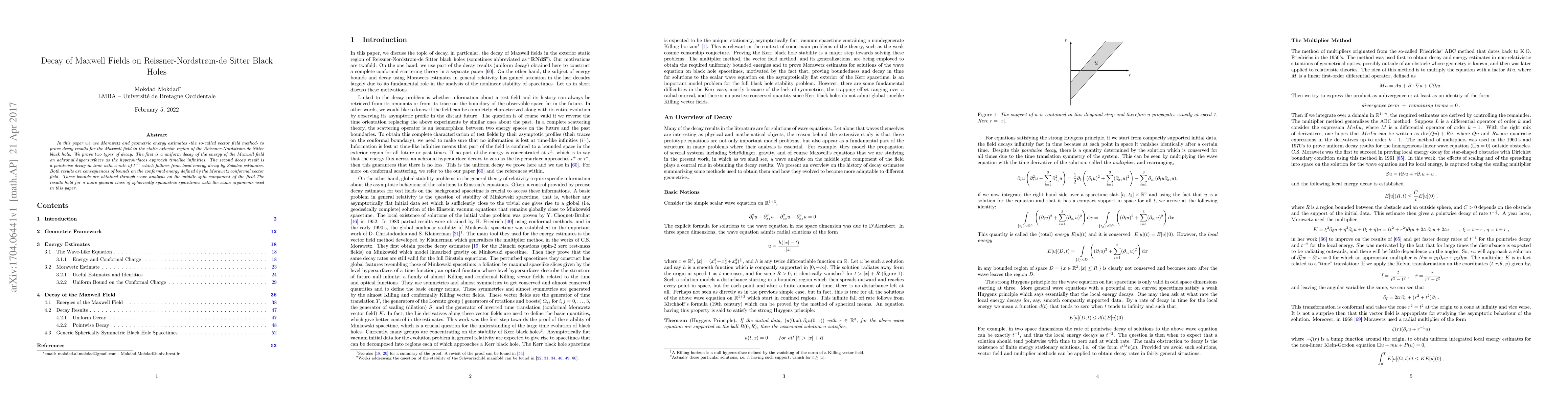 This paper employs Morawetz and geometric energy estimates to demonstrate decay properties of the Maxwell field around Reissner-Nordström-de Sitter black holes. The study proves uniform and pointwise decay rates, with the latter following from local energy decay and Sobolev estimates, both stemming from bounds on conformal energy.