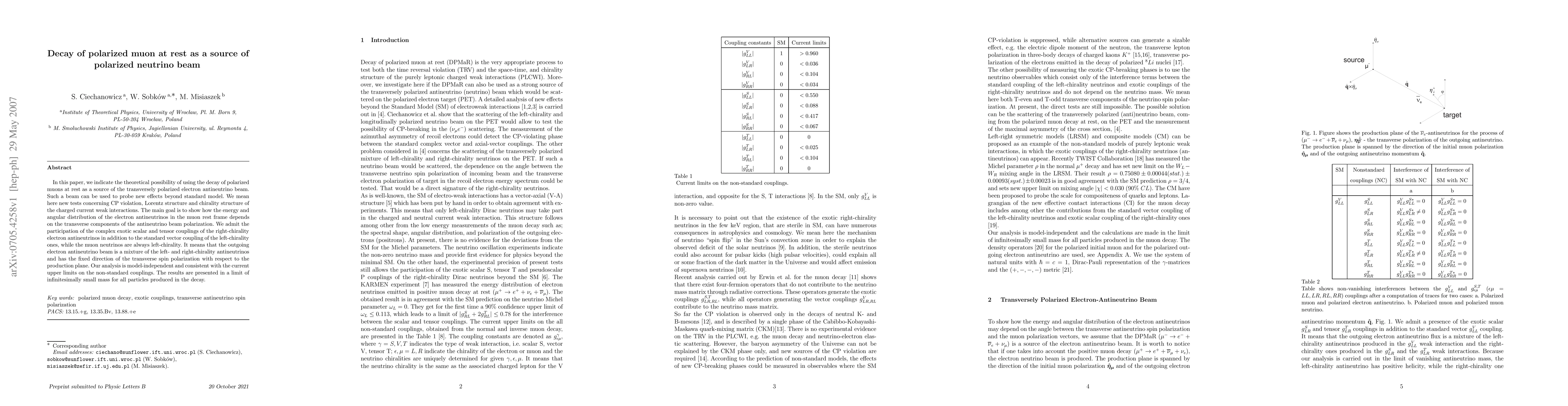 In this paper, we indicate the theoretical possibility of using the decay of polarized muons at rest as a source of the transversely polarized electron antineutrino beam. Such a beam can be used to probe new effects beyond standard model. We mean here new tests concerning CP violation, Lorentz structure and chirality structure of the charged current weak interactions. The main goal is to show how the energy and angular distribution of the electron antineutrinos in the muon rest frame depends on the transverse components of the antineutrino beam polarization. Our analysis is model-independent and consistent with the current upper limits on the non-standard couplings. The results are presented in a limit of infinitesimally small mass for all particles produced in the decay.