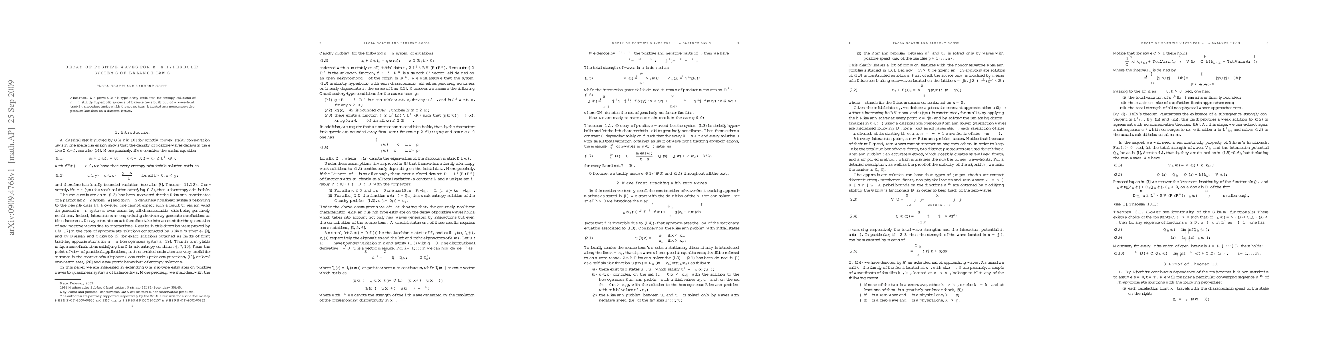 Summary: This paper establishes Ole\u \i nik-type decay estimates for entropy solutions of $n \times n$ hyperbolic systems of balance laws, employing a wave-front tracking method where the source term is treated as a localized nonconservative product.