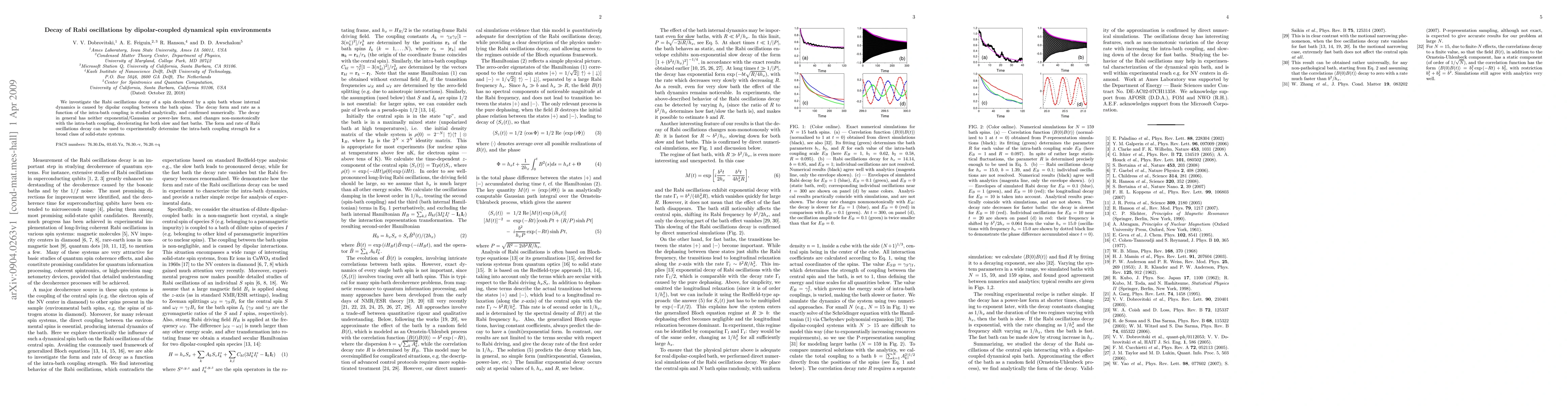 This paper studies the decay of Rabi oscillations in a spin affected by a spin bath with internal dynamics due to dipolar coupling. The analytical and numerical analysis reveals that the decay does not follow exponential, Gaussian, or power-law forms, and varies non-monotonically with intra-bath coupling, providing a method to determine coupling strength in solid-state systems.