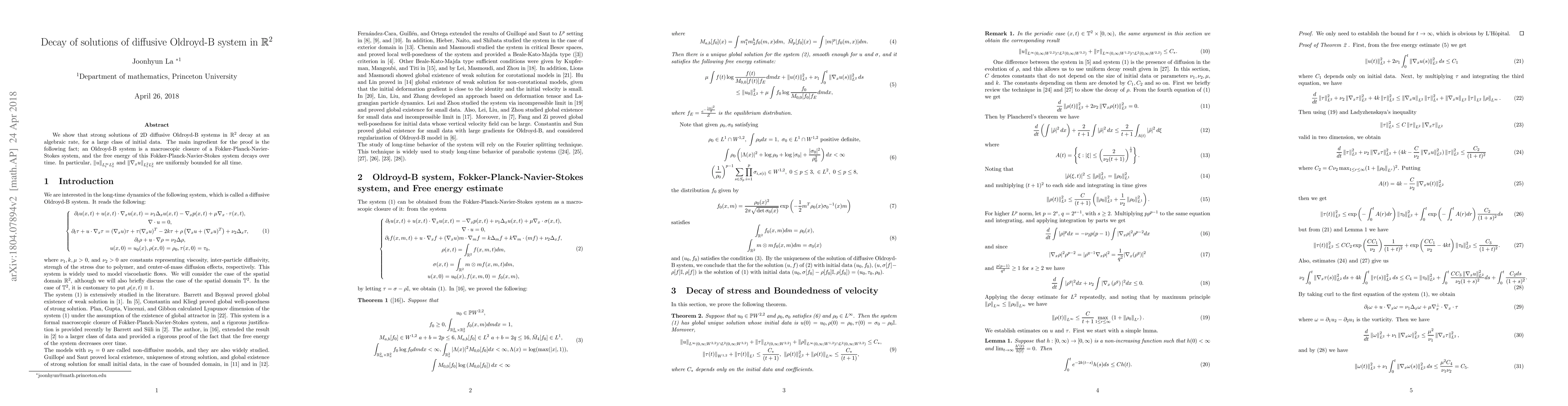Solutions to a 2D diffusive Oldroyd-B system decay at an algebraic rate for most initial data, according to this research paper.