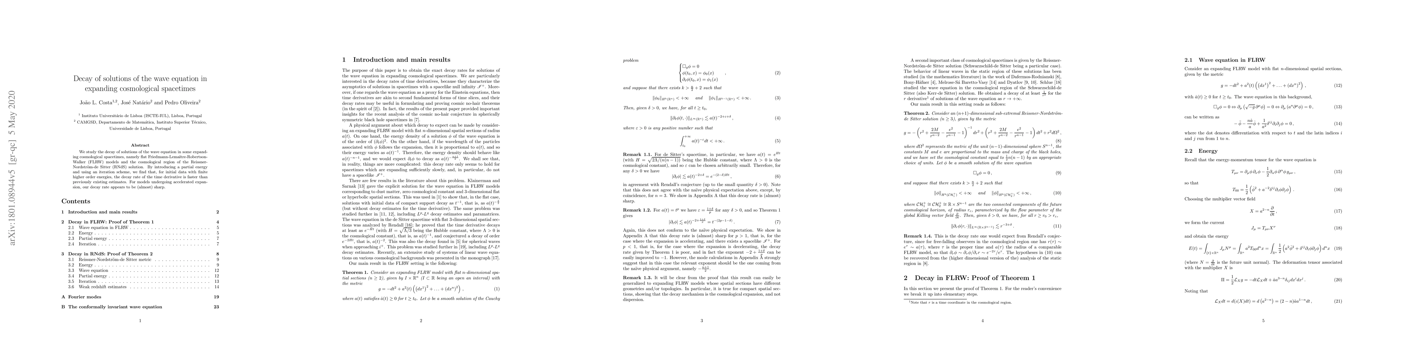 This paper studies how solutions to the wave equation decay in expanding cosmological spacetimes, finding faster-than-previous decay rates for models with accelerated expansion.