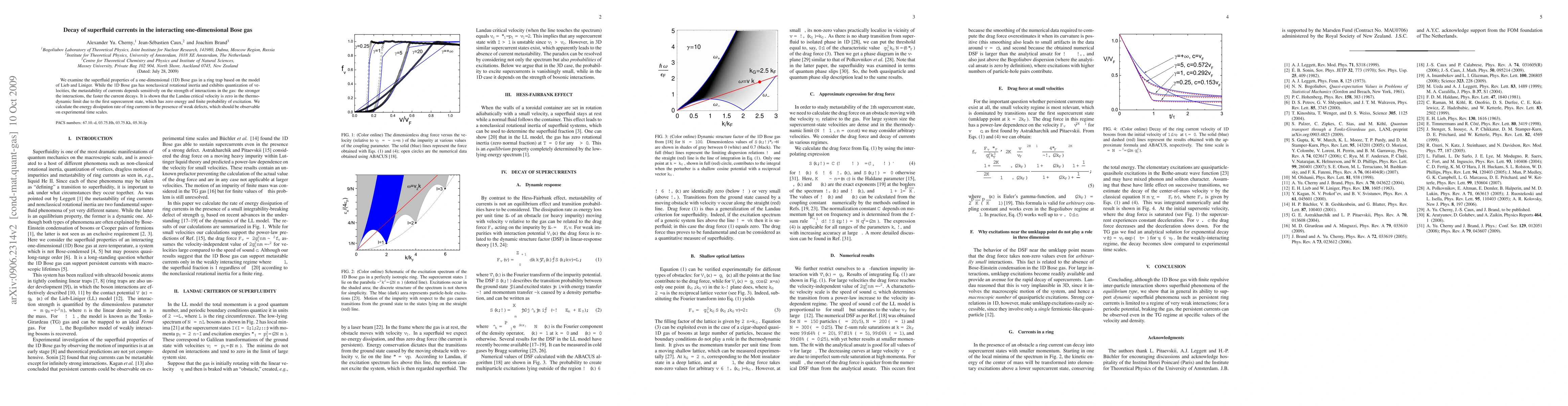 The paper investigates the superfluid decay in an interacting one-dimensional Bose gas, revealing that stronger interactions accelerate current decay, and calculates the energy dissipation rate in the presence of weak defects, demonstrating the zero Landau critical velocity in the thermodynamic limit.